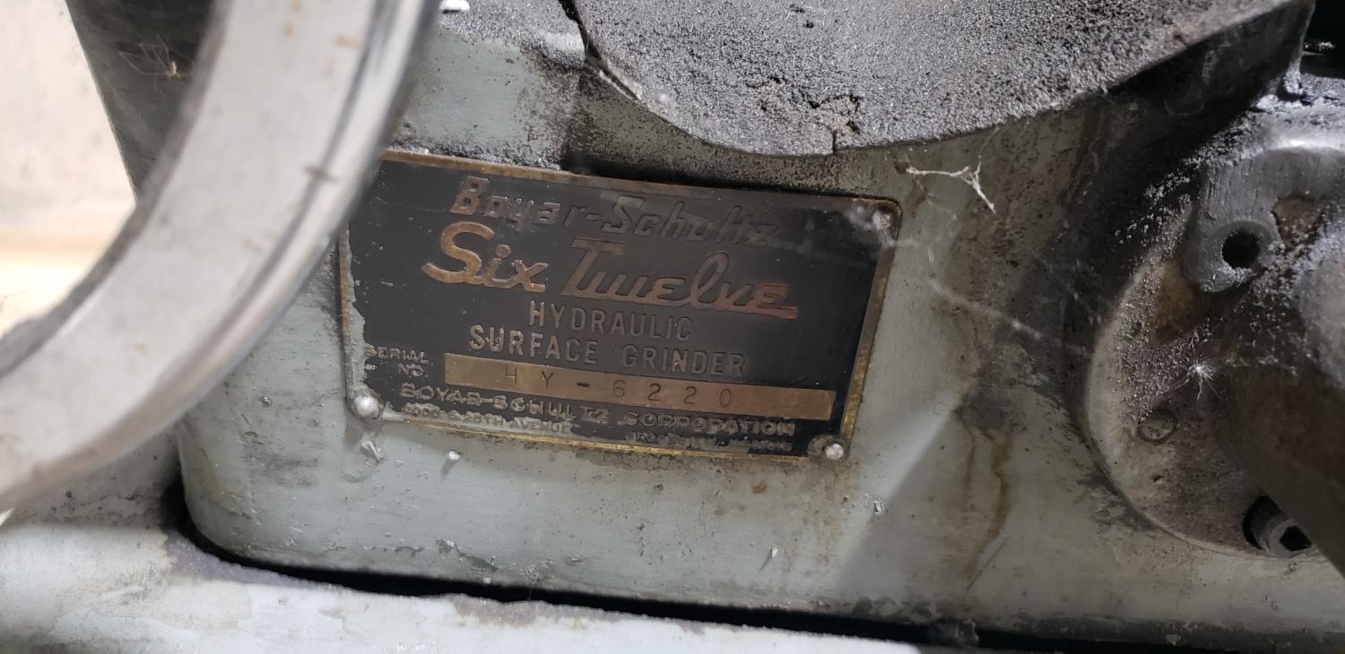 HARIG SURFACE GRINDER, MODEL: 612, SERIAL NUMBER: 15321, Platen Working Area: 6" x 12", Longitudinal Travel: 12-3/4", Cross Feed Travel: 6-3/4", Vertical Working Height (Under 7" Wheel): 12", Standard Grinding Wheel: 7" x 1/2" x 1-1/4" ID, Elevating Handwheel Graduation:.0005", Cross Feed Handwheel Graduation:.001" ...more