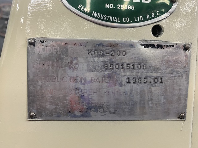 SERIAL. 801061-2MODEL. KGS-200YEAR NEW. 1980CAPACITY. 6" X 14"SPINDLE TO TABLE (MAXIMUM). 17-1/2"LONGITUDINAL TABLE TRAVEL. 18"CROSS TABLE TRAVEL. 7"TABLE TRAVERSE. HANDCROSS FEED RATES. HANDPERMANENT MAGNETIC CHUCK SIZE. 6" X 14"GRINDING WHEEL SIZE. 8" X 1" X 1-1/4"GRINDING WHEEL SPEED. 3460 RPMMOTOR. 1-1/2 HORSEPOWER.