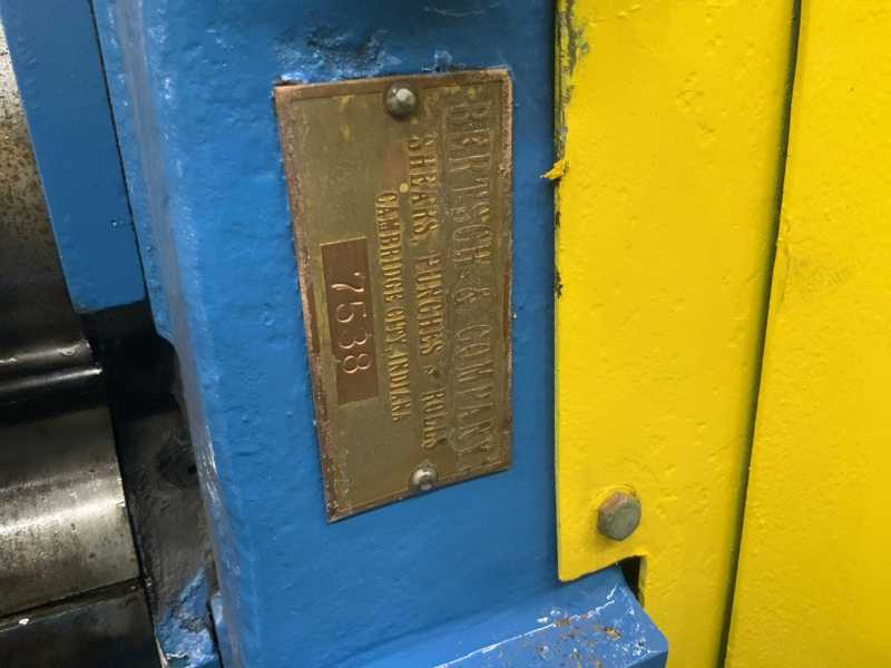 SERIAL. #M10155 YEAR. 1974 MODEL. #14 CAPACITY. 1" MILD STEEL DIAMETER OF ROLLS. 12-1/2" LENGTH OF ROLLS. 76" VARIABLE SPEED POWER ADJUSTMENT TO FRONT AND REAR ROLLS AIR DROP END CENTRAL LUBE (1 SHOT) 30 HP MAIN MOTOR AND CONTROLS 15 HP REAR ROLL ADJUSTMENT MOTOR (2) 1 HP FRONT ROLL ADJUSTMENT MOTOR.