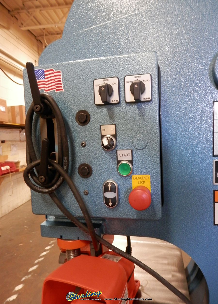 6" x 6" x 1/2" Scotchman #DO-150/240-24M, dual operation hydraulic ironworker, 150 ton, 12" throat, new, #SMDO15024024M Manufacturer: Scotchman Model: DO-150/240-24M 90° Angle Shear Capacity" L: 6.00 90° Angle Shear Capacity" W: 6.00 Shear Capacity: .500 Ton: 150 Stock # SMDO15024024M Request a Quote 10 Play VideoFor Sale by Sterling Machinery Exchange - New Mach. Surplus Record Dealer Since 1970 Contact Seller South El Monte, CA Adam Mattes 626-44...> Show Seller's Phone Number 626-444-0311 Let the seller know you found their listing on Surplus Record! View More Sterling Machinery Exchange - New Mach. 's ListingsDescription DETAILED SPECIFICATIONPunching Capacity150 TonI1 - 1/2" In 1 - 1/4"Special Tooling4" Max. Dia.Throat Depth12"Flat Bar Shear24"(Sabre Blade - Std.)1" x 14"Angle Shear 90 Degrees6" x 6" x 1/2"Angle Shear 45 Degrees (With Bar Shear)3" x 3" x 3/8"Brake 12"75 TonBrake 24"55 TonOpen End BrakeMax. 1/4" x 6"Pipe Notcher3/4", 1"Schedule 401 - 1/4"90 Degrees V-Notcher6" x 6" x 5/16"Rectangle Notcher3" x 5 - 3/4" x 1/2"V - Notch3" x 3" x 1/2"Notching In Leg Of Channel6" To 10"Channel Shear2" To 6" Adj.Rod ShearRound Rod (Max.)1/4" To 1 - 1/4", 9 CavitySquare Rod (Max.)1/4" To 1", CavitySquare Tube Shear1/2" To 2", 12 GaugePicket Tool1/2", 3/4" & 1"Offset Die HolderMax. 40 TonStrokes Per Minute In Light Material20 SPMStrokes Per Minute In Heavy Material11 SPMHydraulics3,500/3,000 PSIMotor Standard10 HP 3 PHMotor Optional10 HP 1PHTypeHydraulicDimensions (L x W x H)78" x 34" x 75"WEIGHT6404 lbsWarranty3 Years on PartsFeaturesMADE IN USADual Operator Allows For Two Opertors To Work At The Same Time At Full Capacity150 - Ton Punch Station (1 - 7/8" In 1")Keyed Punch Ram For SaftyPunching Gauging Table With Fence And ScaleDie Holders - 2", 2 - 1/2", 3"Punch Nut With Wrench & StripperAdjustable Swing-Away Stripper2 Adjustable Electric Stroke Controls With Scale2 Electric Remote Foot PedalsPunch Jog ControlTwo 2-Stage Hydraulic Pumps2 ValvesNotcher Table With GuidesShear Table With Miter FenceSlug ReceptaclesTool Table Work AreaElectrical Box Supplied With Emergency Palm Button & Lock-Out Tag-Out AccommodationsAll Guards NecessaryForklift Accommodations Request More Information from SellerGet Your Price from Sterling Machinery Exchange - New Mach.! "*" indicates required fieldsName*Company*Email* PhoneZip / Postal Code*QuestionMake an OfferRequests Send me a shipping quote I am interested in financingSend Copy Email me a confirmation of this inquiryBuyer Protection Use our partner Escrow.com to buy or sell equipment safelyBuyer Protection Send me info about buyer protectionThis field is hidden when viewing the formDealer Email Buyers Who Viewed This Listing Also Viewed … 6.5" x 6.5" x 0.5" Geka Hydracrop #110/A, Hydraulic Ironworker, 121 Ton, 3" stroke, 12" throat, 7.4 HP, 240/480 V.Category: IronworkersSeller: Equilibrium MachineryLocation: Waukesha, WI Mfr: GekaModel: 110/A2007 121 ton Geka Hydracrop 110/A Hydraulic Ironworker, Tonnage 121, Punching Capacity 1-1/2″ through 3/4″, Punch Stroke 3”, Punch table work height 45-1/2”, Throat Depth 12”, Angle Shear @ 90 6-1/2″ x 6-1/2″ x 1/2″, Angle Shear @ 45 3″ x 3″ x 5/16″ ...more 5.98" x 5.98" x 0.51" Ermak #EKM-121-198, ironworker, 121 ton, 3.15" stroke, 24" throat, 2011Category: IronworkersSeller: Machinery Marketing InternationalLocation: Chicago, IL Mfr: ErmakModel: EKM-121-198Year: 2011Used Ermak EKM 121-198. This pre-owned Ironworker is in great working condition and can be securely delivered to your facility floor. If you have any technical questions about this Ermak Ironworker we can review machine. To request a quote, inquire about rigging and trucking or to schedule an inspection, contact us ...more 5.98" x 5.98" x 0.51" Ermak #EKM-121-198, ironworker, 3.15" stroke, 24" throat, 2011Category: IronworkersSeller: Machine Tool BidsLocation: Chicago, IL Mfr: ErmakModel: EKM-121-198Year: 2011MACHINE, 2011 ERMAK EKM 121-198. 6" x 6" x 0.5" Peddinghaus #Peddimax-110/140, ironworker, 10 HP, 2" strokeCategory: IronworkersSeller: Bud's Machine ToolsLocation: Murray, UT Mfr: PeddinghausModel: PEDDIMAX-110/140Overview, Type:IronworkersManufacturer:PEDDINGHAUSModel:110/140Stock #:1885Status:For SaleCountry:United States, ImperialMetricTonnage 110 T 99.79 t Angle (L1) 6" 152.4 mm Angle (L2) 6" 152.4 mm Angle (T) 0.5" 12.7 mm Power 10 hp 10 hp Stroke 2" 50.8 mm.JUST ADDED! 6" x 6" x 5/8" Mubea #HIW-1000/610, Dual-Station Hydraulic Ironworker, 110 Ton, 24" throat, 2001Category: IronworkersSeller: AuctoLocation: Louisville, KY Mfr: MubeaModel: HIW-1000/610Year: 2001THE MUBEA MODEL HIW 1000/610 IS A 2001, 110-TON DUAL-STATION HYDRAULIC IRONWORKER WITH A 24-INCH (610 MM) THROAT DEPTH. IT IS FIVE DEDICATED WORKSTATIONS FOR PUNCHING, NOTCHING, ANGLE SHEARING, ROUND/SQUARE BAR SHEARING, AND FLAT BAR SHEARING. THE MACHINE IS POWERED BY AN 11 HP MOTOR AND OPERATES VIA DUAL CYLINDERS ...moreShare × "*" indicates required fieldsYour Name*Your Email* Recipient's Email* Note to Recipient