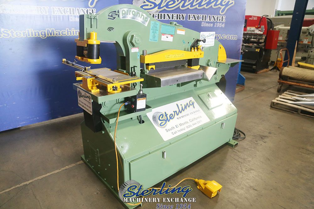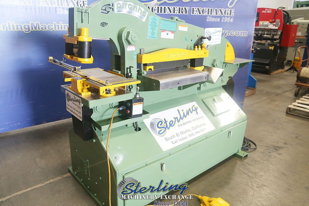 6" x 6" x 5/8" Piranha #P-120, ironworker, 120 ton, 25 HP, 25 gallon hydraulic tank Manufacturer: Piranha Model: P-120 90° Angle Shear Capacity" L: 6.00 90° Angle Shear Capacity" W: 6.00 Shear Capacity: .625 Ton: 120 Stock # A7687 Price: $38,500 USD - Finance for as low as $781/mth Estimated monthly payment valid upon approved credit. Request Info 10 For Sale by Sterling Machinery Exchange Surplus Record Dealer Since 1970 Contact Seller South El Monte, CA Adam Mattes 626-44...> Show Seller's Phone Number 626-444-0311 Let the seller know you found their listing on Surplus Record! View More Sterling Machinery Exchange 's ListingsDescription DETAILED SPECIFICATIONPunch CapacityMax. 1-1/2″ Thru 1″ Thick Material Or 120 TonsBending CapacityMax. 120 TonsPunch End CapacityMax. 120 TonsBar Capacity: Max.Max. 2″ Round Or 1-3/8″ SquarePlate Capacity3/4″ X 18″Angle CapacityMax. 6″ X 6″ X 5/8″Copper NotcherMax. 4″ X 6″ X 3/8″Drive MotorHP: 25Hydraulic Tank Capacity25 GallonsFeaturesFlat Shear StationFoot Pedal Punch ControlCoper/NotcherAngle ShearPunch StationShear Blades Freshly SharpenedHigh Quality Industrial Paint Job Request More Information from SellerInquire Further with Sterling Machinery Exchange! "*" indicates required fieldsName*Company*Email* PhoneZip / Postal Code*QuestionMake an OfferRequests Send me a shipping quote I am interested in financingSend Copy Email me a confirmation of this inquiryBuyer Protection Use our partner Escrow.com to buy or sell equipment safelyBuyer Protection Send me info about buyer protectionThis field is hidden when viewing the formDealer Email Buyers Who Viewed This Listing Also Viewed …JUST ADDED! 6" x 6" x 5/8" Mubea #HIW-1000/610, Dual-Station Hydraulic Ironworker, 110 Ton, 24" throat, 2001Category: IronworkersSeller: AuctoLocation: Louisville, KY Mfr: MubeaModel: HIW-1000/610Year: 2001THE MUBEA MODEL HIW 1000/610 IS A 2001, 110-TON DUAL-STATION HYDRAULIC IRONWORKER WITH A 24-INCH (610 MM) THROAT DEPTH. IT IS FIVE DEDICATED WORKSTATIONS FOR PUNCHING, NOTCHING, ANGLE SHEARING, ROUND/SQUARE BAR SHEARING, AND FLAT BAR SHEARING. THE MACHINE IS POWERED BY AN 11 HP MOTOR AND OPERATES VIA DUAL CYLINDERS ...moreJUST ADDED! 6" x 6" x 1/2" Scotchman #12012-24M, Hydraulic Ironworker, 120 ton, 24" bar shear, 12" throat depth, 2.25" punch stroke, 47 SPM, 5 HP, 460 Volt, 1996Category: IronworkersSeller: Naab Sales CorporationLocation: Blaine, MN Mfr: ScotchmanModel: 12012-24MYear: 1996JUST ADDED! 6" x 6" x 1/2" Scotchman #9012, Hydraulic Ironworker, 90 ton, 24" blade length, 12" throat depth, 56 SPM @ 1/4", 5 HP, 1986Category: IronworkersSeller: Yoder Machinery SalesLocation: Holland, OH Mfr: ScotchmanModel: 9012Year: 1986SERIAL. 20201 R686, MODEL. 9012, YEAR NEW. 1986, PUNCHING CAPACITY. 90 TON, PUNCHING DIAMETER THRU THICKNESS. 1-1/8" THRU 1", CAPACITY ANGLE @ 90 DEGREES. 6" X 6" X 1/2", CAPACITY ROUNDS. 1-1/4", CAPACITY SQUARES. 1", CAPACITY FLATS. 1/4" X 24", STROKED PER MINUTE. 37 & 10", LENGTH OF BLADE. 24", DEPTH OF THROAT. ...moreJUST ADDED! 6" x 6" x 1/2" Scotchman #150/240, Ironworker, 12" throat, Dual Operator, 150 Ton, ToolingCategory: IronworkersSeller: Revelation MachineryLocation: Chicago, IL Mfr: ScotchmanModel: 150/240Year: 1900Make: Scotchman, Model: Dual Operator 150/240, Year: 1900, Machine Location: Indiana, Punch Capacity:, – 150 Ton, – Maximum Hole Size: 1-7/8″ in 1″ Mild Steel, Throat Depth: 12″, Maximum Tooling Diameter: 4″, Flat Bar Shear Capacity:, – 1″ x 14″ Mild Steel, – ...moreJUST ADDED! 6" x 6" x 1/2" Uni-Hydro #120-24, 4 Station Ironworker, 1996Category: IronworkersSeller: Kepco +Location: Salt Lake City, UT Mfr: Uni-HydroModel: 120-24Year: 1996Share × "*" indicates required fieldsYour Name*Your Email* Recipient's Email* Note to Recipient