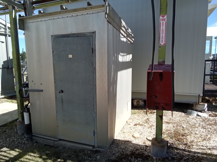 Portable equipment building measuring 6' x 6', built in 2000. This heated structure is currently disconnected and is in 'poor' condition. Located in Frenchman Butte, Saskatchewan, Canada. Ideal for storage or as a workshop..