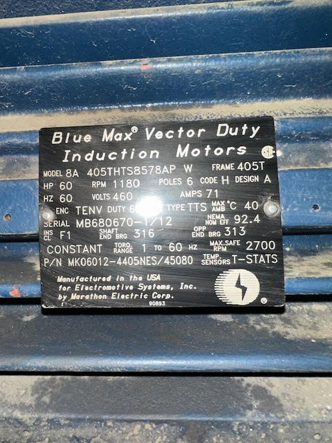 60 HP 1120 RPM Brook, Frame 405T, TEFC BB, 460/796 Volts