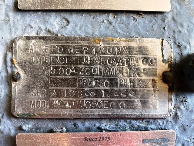 60 HP 650/1725 RPM U.S. Motors, Frame 508ATZ, encl.TEBV, 500 VA, 150/300 VF