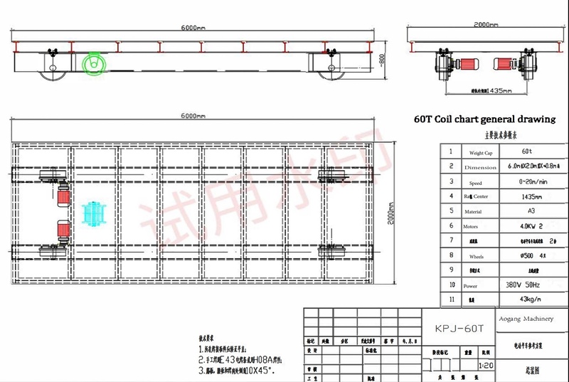 75 Ton, PM, coil transfer cart, 3 coils, hydraulic drive, 37" rail distance, 48" x37" saddle