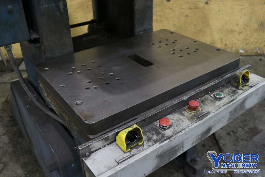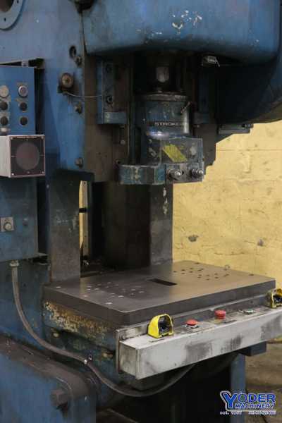 , CAPACITY. 60 TON, STROKE. 3", ADJUSTMENT. 4", SHUT HEIGHT. 14-1/4", THROAT. 10", BED AREA. 32" LR x 21" FB, RAM AREA. 17" LR x 11" FB, BOLSTER. 3", WIDTH BETWEEN UPRIGHTS. 15", TYPE CLUTCH. AIR, GEARING. FLYWHEEL, K.O IN RAM, MANUAL RAM ADJUSTMENT, PALM BUTTONS, WIRED 440 VOLT, FULL ELECTRICAL CONTROLS, FOOT PEDAL ...more