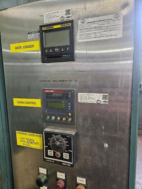 60" width x 72" H x 60" D Grieve, electric high-temp walk-in oven, 1200°F Manufacturer: Grieve Year: 1995 Wide: 60.00 High: 72.00 Long/Deep: 60.00 Stock # 20927 Request a Quote 6 For Sale by W H Kay Co, The Surplus Record Dealer Since 2018 Contact Seller Cleveland, OH Mike Kay 440-51...> Show Seller's Phone Number 440-519-3800 Let the seller know you found their listing on Surplus Record! View More W H Kay Co, The 's ListingsDescription GRIEVE HIGH TEMPERATURE WALK-IN OVENMODEL B2-1200 S/N 420057I.D. 60" Wide x 60" Deep x 72" High1200 Deg F. 460/3/60 140 KWStainless Steel Lined Recirculating Walk-In Oven complete with Combination Horizontal/Vertical Air Flow,10 H.P. Recirculating Fan, Insulated Floor with Cart Tracks, Manual Roll-In Cart, and Powered Exhaust Fan.Side Mounted Control Panel complete with Watlow F4 Digital Set Point Programmable Temperature Controller,Grieve High Limit, and Omega Digital Recorder.*Excellent Condition*O.D. 120" Wide (includes Control Panel) x 156" Deep x 138" High (includes Exhaust Fan) Request More Information from SellerGet Your Price from W H Kay Co, The! "*" indicates required fieldsName*Company*Email* PhoneZip / Postal Code*QuestionMake an OfferRequests Send me a shipping quote I am interested in financingSend Copy Email me a confirmation of this inquiryBuyer Protection Use our partner Escrow.com to buy or sell equipment safelyBuyer Protection Send me info about buyer protectionThis field is hidden when viewing the formDealer Email Buyers Who Viewed This Listing Also Viewed …JUST ADDED! 61" width x 73" H x 60" L Wisconsin #EWN-55-6E, Class A, 500°FCategory: Walk-in Type OvensSeller: Hi-Heat CoLocation: South Windsor, CT Mfr: WisconsinYear: 2016Featured 60" width x 72" H x 72" L Grieve #WRC566-500, electrically heated walk-in oven, 500°F, Watlow 942 digital programmable ptrlr, 2001, (3 available)Category: Walk-in Type OvensSeller: Furnaces, Ovens & Baths, IncLocation: Detroit, MI Mfr: GrieveYear: 2001JUST ADDED! 54" width x 76" H x 52" L Grieve #WRC446-500, Walk-In Oven, 500 °F max Temp., 350000 BTU/hr. Heat Input, 1.5 HP, 460 VCategory: Walk-in Type OvensSeller: HGR24Location: Euclid, OH Mfr: GrieveInventory No. 0925-166-0001 Manufacturer Grieve Model No. WRC446-500 Name Walk In Oven Arrival Date 01-29-2026 Dimensions L x W x H (inches) 114 x 84 x 90 Capacity 500°F Electrical 3/60/460 Weight (lb.) 3275 Category Heat Treating Condition Used Available Quantity 1 Serial No. 411890 Item 54" X 52" X 76" I.d., 1 ...moreJUST ADDED! 60" width x 72" H x 120" D Steelman #5610GSP, Walk-In Batch Oven, NG, 400,000 BTU, 450°F, 208 V., 3phCategory: Walk-in Type OvensSeller: Buy Rite FinishingLocation: Hastings, NEID measurements: 5'w X 6'h X 10'l, OD measurements: 86"w X 90"h X 14', Max Temperature: 450*F, Solvent Rating: 0.65 Gallons/Batch @ 450*F, Electrical Power: 208v/3ph, Fuel: Natural Gas, BTU: 400,000 max, Shipping Weight: Approx. 5400 lbs. 60" width x 72" H x 120" L Steelman, gas fired, 450°F, solvent ratedCategory: Walk-in Type OvensSeller: Furnace Brokers InternationalLocation: FORT WORTH, TX Mfr: SteelmanShare × "*" indicates required fieldsYour Name*Your Email* Recipient's Email* Note to Recipient