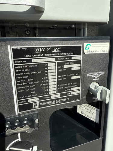 Square D HVL/cc 15kV Metal-Enclosed Load Interrupter Switchgear – 600A, 40kAThis 15kV Square D HVL/cc load interrupter switchgear provides dependable medium-voltage switching performance for industrial and utility distribution systems. Rated 600A continuous with a 40kA momentary withstand rating and 25kA short-time (2 sec) capability, this unit delivers robust fault protection and switching reliability.Featuring 125VDC motor-operated close and trip, 95kV BIL insulation strength, and heavy-duty metal-enclosed construction, it is ideal for substations, industrial plants, and large commercial distribution systems requiring safe, durable, and field-proven medium-voltage switching.Applications:- Utility distribution- Industrial plants- Large commercial facilities- Substation feeder switching- Transformer primary protectionClick REQUEST QUOTE anywhere you see it on our site to receive a quote, with Pricing and Specs, directly to your email!!* All Descriptions, Specifications and Features are correct to the best of our knowledge. Interested buyers should verify before purchasing.