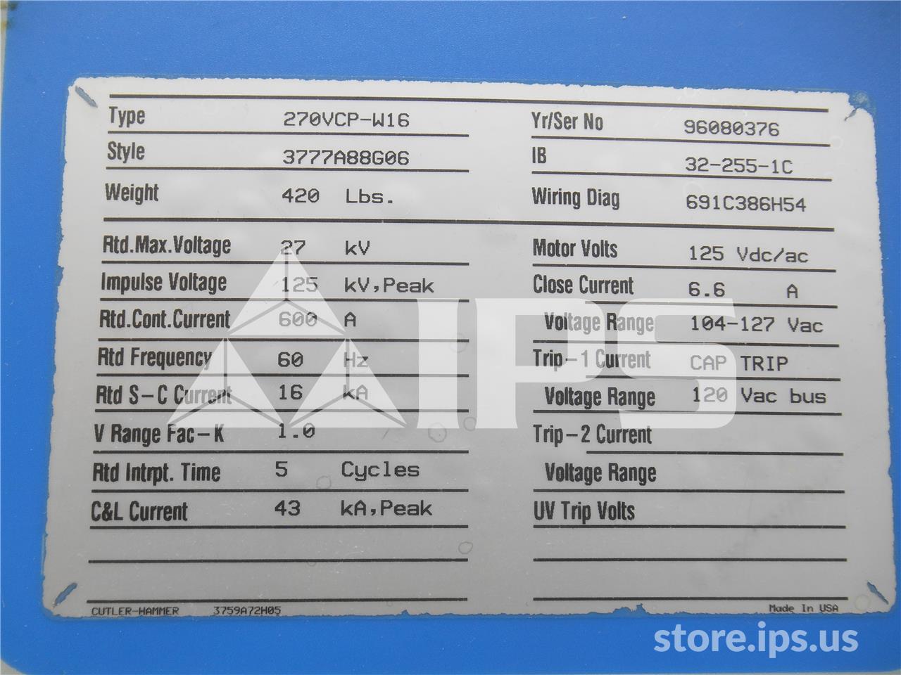 600 Amps, Ch 270vcp-w 16 Eo/do Parts Unit Manufacturer: Cutler-Hammer Amps: 600 Stock # 021-755 Request a Quote 6 For Sale by National Switchgear - Circuit Breakers etc. Surplus Record Dealer Since 1981 Contact Seller Lewisville, TX Sales Dept. 833-32...> Show Seller's Phone Number 833-322-0936 Let the seller know you found their listing on Surplus Record! View More National Switchgear - Circuit Breakers etc. 's ListingsDescriptionSpecificationsManufacturerWestinghouse / Cutler HammerMV Vacuum Breaker Type270VCP-W16Frame Rating (Amps)600AFrame Rating (MVA)K=1 Shipping Width30 in Shipping Height30 in Shipping Depth35 in Shipping Weight420 lb Request More Information from SellerGet Your Price from National Switchgear - Circuit Breakers etc.! "*" indicates required fieldsName*Company*Email* PhoneZip / Postal Code*QuestionMake an OfferRequests Send me a shipping quote I am interested in financingSend Copy Email me a confirmation of this inquiryBuyer Protection Use our partner Escrow.com to buy or sell equipment safelyBuyer Protection Send me info about buyer protectionThis field is hidden when viewing the formDealer Email Buyers Who Viewed This Listing Also Viewed … 600 Amps, ABB, 5HV-100, electrically operated, drawout, 5000 Volts, #VB6319Category: Indoor Type Vacuum Circuit BreakersSeller: RESA Power SolutionsLocation: Cerritos, CA Mfr: AbbModel: 5HV-100ABB Circuit Breaker, Vacuum Breakers type, Catalog Number 5HV-100, 600 amp frame current, 5000 volts, Electric operation, Drawout mounting. 600 Amps, Westinghouse, R1, outdoor vacuum (6 available)Category: Indoor Type Vacuum Circuit BreakersSeller: BCS Switchgear IncLocation: Krugerville, TX Mfr: WestinghouseModel: R1 630 Amps, ABB, VD4 17.06.16, Vacuum Circuit breaker, 17.5kV, 120V (2 available)Category: Indoor Type Vacuum Circuit BreakersSeller: RS Breakers And ControlsLocation: Mississauga, ON Mfr: AbbModel: VD4 17.06.16 630 Amps, Areva, HVX12-16-06E185, vacuum circuit breaker, 12 KV, new surplusCategory: Indoor Type Vacuum Circuit BreakersSeller: Lenmark IndustriesLocation: Langley, BC Mfr: ArevaModel: HVX12-16-06E185SKU: 129183, Model: HVX12-16-06E185, Condition: Surplus New, Dimensions: 32.00 (H) x 20.00 (W) x 27.00 (L) inches, Additional :, Rated voltage: 12KV, Rated current: 630A, Rated breaking current: 16KA. 630 Amps, ABB, VD4, Cat VD4-2406-16, 25 KV, 125 VDC, with box frameCategory: Indoor Type Vacuum Circuit BreakersSeller: MGB TransformersLocation: Saint-Pie, QC Mfr: AbbModel: VD4Share × "*" indicates required fieldsYour Name*Your Email* Recipient's Email* Note to Recipient