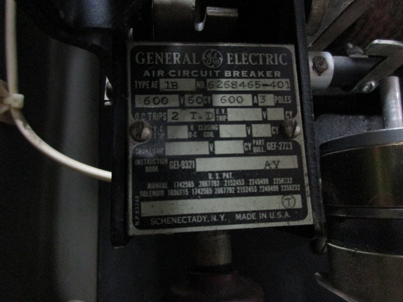 (2) Used G.E. 600 amp, 600 volt air circuit breakers., ELECTRIC 600 AMP.