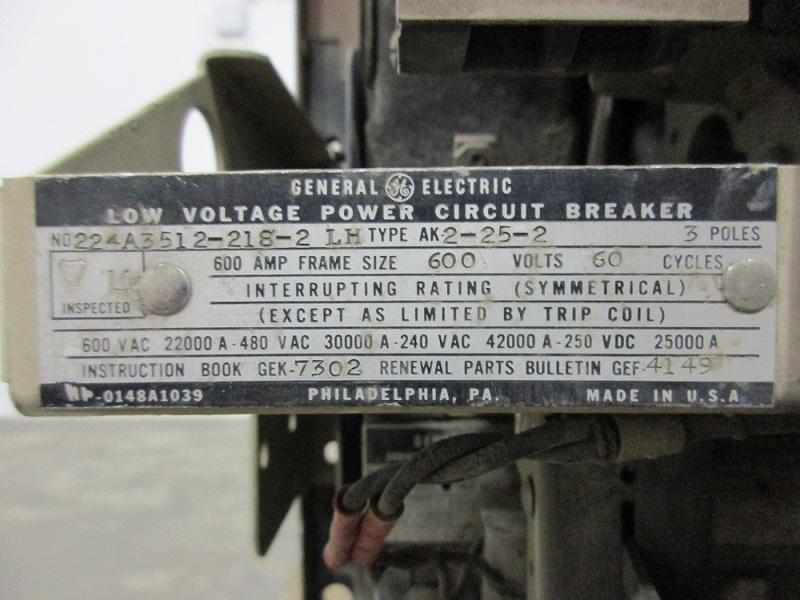 600 Amps, General Electric, AK-2-25-2, electrically operated, drawout, #AB3817