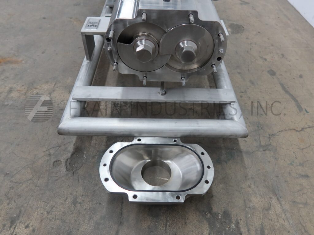 Waukesha, Model 130UTS, positive displacement twin screw pump with 316 stainless steel contact parts. Rated from 1 to 300 gallons of product per minute with current screw pitch and capable of up to 600 gallons per minute – depending on materials, application and machine configuration. 375 psi maximum working ...more