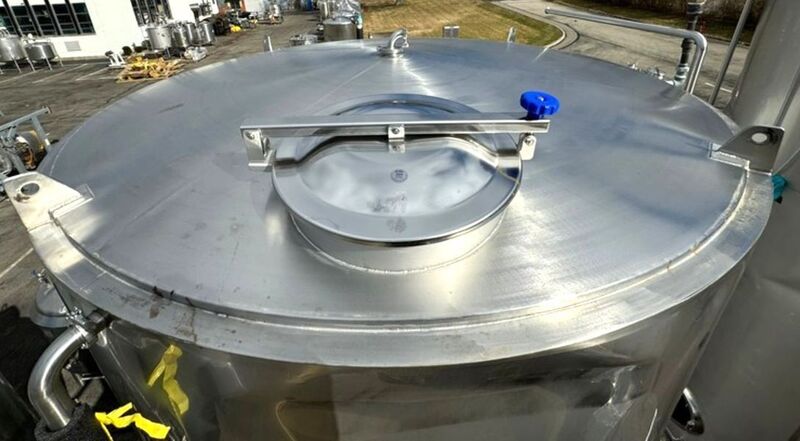 6000 Gallon (200 BBL) Specific Mechanical Systems Jacketed Sanitary Stainless Steel Tank. 8'6" dia.x 14' T/T. Approx 18' OAH. 2" outlet on Cone Bottom. Top 18" Manway. Last used as a Cold Liquor Tank in a distillery.