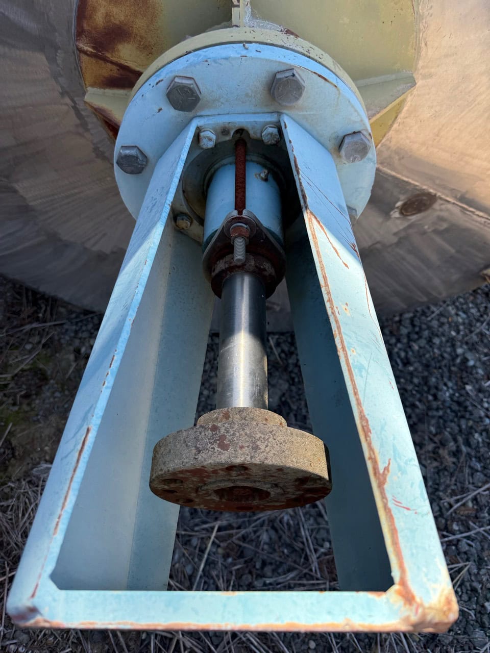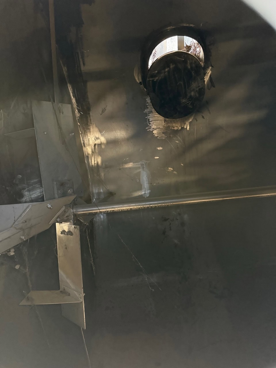 DCI, 6000 gallon, 304 stainless steel insulated horizontal tank. Vessel Dimensions: 85" diameter x 243" straight wall with dish ends. a 20" x 16" front end man way with flip open cover, (2) ¾ Hp top mounted prop style mixers, CIP spray balls, thermowell and a 3" OD / 2½" ID ...more