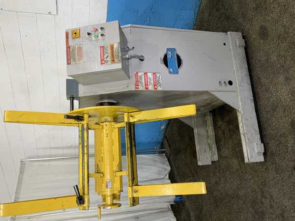 Coil weight capacity: 6000 pounds, Coil width capacity: 24 inches, Minimum expansion range: 15 inches, Maximum expansion range: 20 inches, Coil O.D. capacity: 60 inches, Coe Press Pull Off Double End Coil Reel Uncoiler :, Coil weight capacity: 6,000 Lbs., Coil width capacity: 24", Expansion range: 15" - 20" (To be ...more