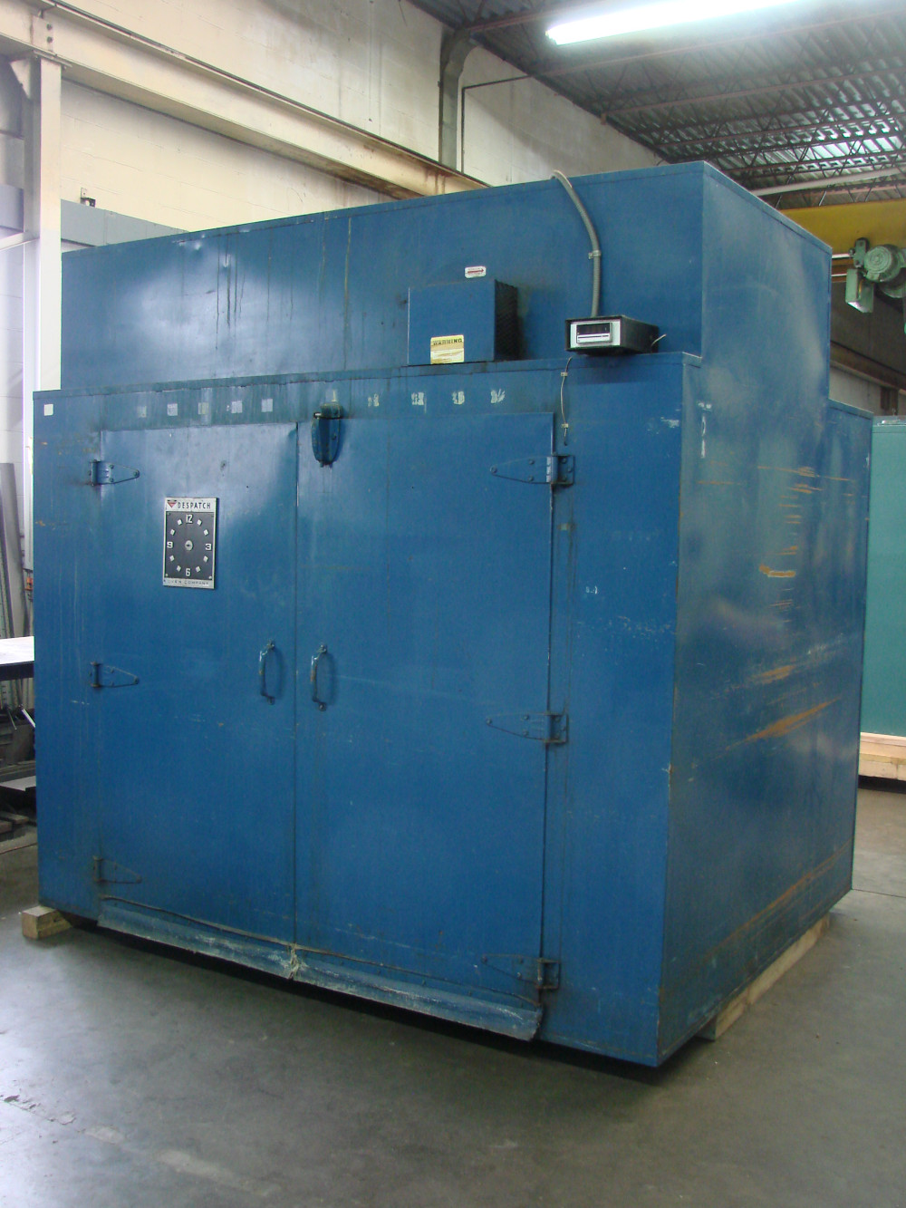 Despatch walk-in oven: model V-41STD: 64"W x 65"H x 68"L work area, 500F: aluminized steel interior, horizontal air-flow, insulated floor with wheel guide channels, Eurotherm 2416 solid state temperature control, chart recorder, 480V, 3PH, 38KW