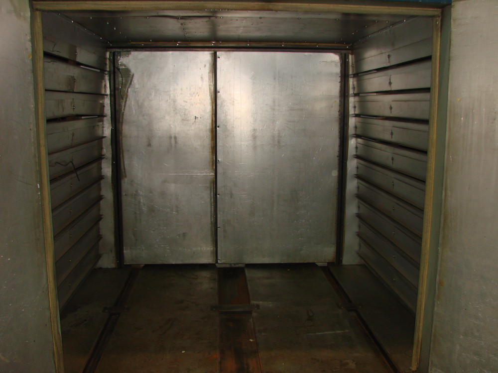 ID measurements: 5'w X 6'h X 10'l, OD measurements: 86"w X 90"h X 14', Max Temperature: 450*F, Solvent Rating: 0.65 Gallons/Batch @ 450*F, Electrical Power: 208v/3ph, Fuel: Natural Gas, BTU: 400,000 max, Shipping Weight: Approx. 5400 lbs.
