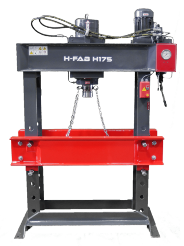 RMT™ H-FAB H™ presses come in standard sizes and can be customized and produced according to customer purpose. These are workshop-type presses and can be manufactured up to 1100 Tons in automatic and manual as optional. They are used mostly in repair and maintenance workshops for the small bending, punching, straightening, extracting/removing.