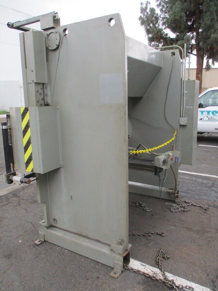 SERIAL. 3844, MODEL. 7608, YEAR. 8-1996, CAPACITY. 60 TONS, OVERALL LENGTH OF BED & RAM. 72, DISTANCE BETWEEN HOUSINGS. 52", STROKE OF RAM. 8", OPEN HEIGHT. 14", CLOSED HEIGHT. 6", DEPTH OF THROAT. 8", RAM SPEED FAST APPROACH. 130 IPM, RAM SPEED SLOW BEND. 25 IPM, RAM SPEED FAST RETURN. 220 IPM, 2 AXIS AP-2 CNC ...more