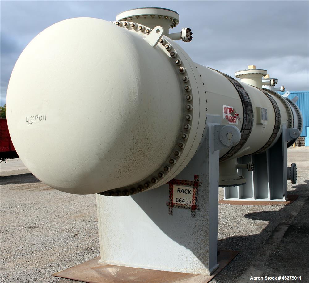 unused- hughes-anderson 2 pass shell & tube heat exchanger, 7,110 square feet, type aet, size 52" x 28', horizontal. carbon steel shell rated 600 psi/full vacuum at -50 to 400 degreesf. (989) 1" diameter x 28 long carbon steel tubes rated -50 to 500 psi/full vacuum at 400 degrees f. openings shell (2) 10" ...more