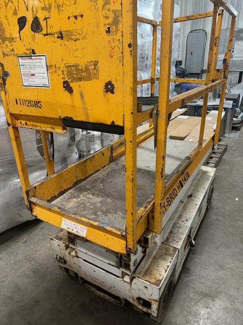 Pre Owned Hy-brid HB1430 Scissors Platform Lift, Serial Number:, Lift Capacity 670 Lbs, Lift Height 20’, Hand Held Controls, On Board Charger, Approximate Overall Weight 1645 Lbs, Price FOB Truck $5500.