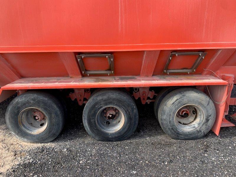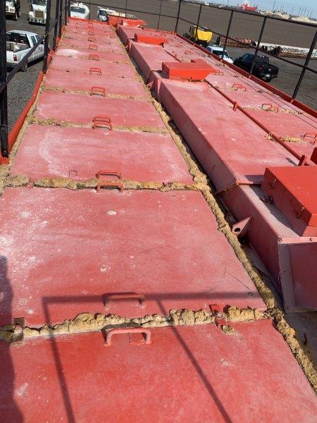 Make: CMI Model: Unknown Serial Number: Unkown Year: Unknown Type: Reverse Air Capacity (ACFM): Approximately 68,000 ACFM Bag Size: Unknown Bag Count: 1,008 bags (24 doors x 42 bags) Total Cloth Area: Unknown Access: Clean out doors on both sides and several clean out ports on both augers Portability: Portable (Triple Axle) Dust Discharge System: Dual auger discharge, driven by (2) 125 HP motors Fan Make: Unknown Fan Model: Unknown Fan Year: Unknown Fan ACFM: Unknown Fan HP: 125 HP (x2 TEFC motors) Damper: Fire damper on entry duct, damper on exhaust fan Ductwork: Transition duct from drum to baghouse included, ladder provides acess Insulation: No Stack: Current Status: On ground staged for loadout Controls: No Extra Components: No Other Notes: Baghouse last in use December 2024, replaced with larger baghouse.