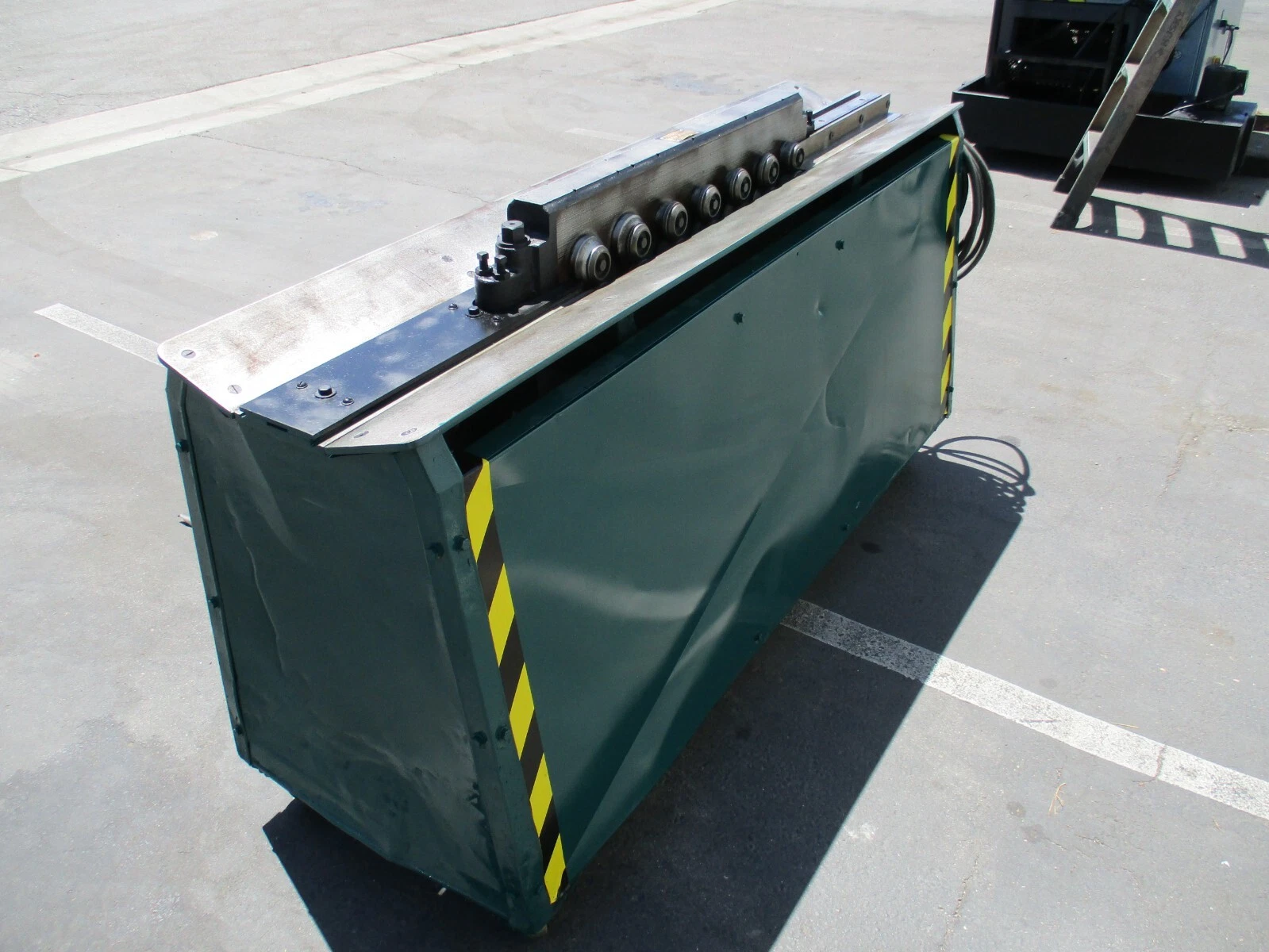 SERIAL.1048, METAL THICKNESS CAPACITY. 18 GAUGE, NUMBER OF STANDS. 7, MAXIMUM STOCK WIDTH. 3-7/8", SHAFT DIAMETER. 1-1/4", HORIZONTAL SHAFT CENTER DISTANCE. 4", FLOOR TO PASSLINE. 35", CURRENTLY SET UP 1/2" PITTSBURGH, ENTRY & EXIT ADJUSTABLE EDGE GUIDES, 1/2 HORSEPOWER MAIN MOTOR.