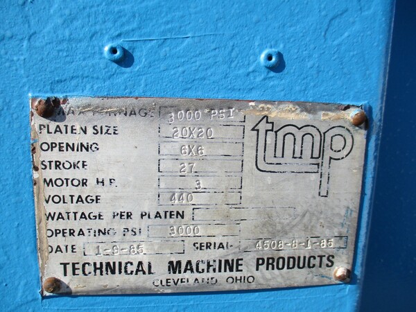 70 Ton, TMP, Slab Side Hydraulic Press, 20" x 20" Manufacturer: Tmp Ton: 70.0 Price: $14,500 USD - Finance for as low as $294/mth Estimated monthly payment valid upon approved credit. Request Info 10 For Sale by TNT Industrial Surplus Record Dealer Since 2007 Contact Seller Orange, CA Jim Thinnsen 714-61...> Show Seller's Phone Number 714-612-1480 Let the seller know you found their listing on Surplus Record! View More TNT Industrial 's ListingsDescription 70 Ton TMP Slab Side Hydraulic Press, 20" X 20"" Request More Information from SellerInquire Further with TNT Industrial! "*" indicates required fieldsName*Company*Email* PhoneZip / Postal Code*QuestionMake an OfferRequests Send me a shipping quote I am interested in financingSend Copy Email me a confirmation of this inquiryBuyer Protection Use our partner Escrow.com to buy or sell equipment safelyBuyer Protection Send me info about buyer protectionThis field is hidden when viewing the formDealer Email Buyers Who Viewed This Listing Also Viewed … 70 Ton, 72" x 36", up-act, 24" stroke, 44.5" daylight, (2) 6" bore cyls, 32" work height, 15 HP, #92Category: Hydraulic PressesSeller: Icon Industries, IncLocation: Grand Rapids, MI44 \u00bd" DAYLIGHT. APPROX 24" STROKE. TWO 6" BORE DOUBLE-ACTING CYLINDERS WITH 2" RODS. 32" OPERATOR HEIGHT. GUIDED WITH 4 POSTS ATTACHED TO FRAME (MISSING ONE) AND A CHAIN LEVELING SYSTEM. CONTROL PANEL INCLUDING ALLEN-BRADLEY SLC 100. PALM BUTTON STATION. HYDRAULICS MOUNTED ON TOP OF PRESS. 15 HP, 1800 RPM ...moreJUST ADDED! 75 Ton, Dake #805076-2, Hydraulic Straightening Press, 10" Str, 2 Hp, variable speed, 30" between housing,Category: Hydraulic PressesSeller: AuctoLocation: Louisville, KY Mfr: DakeModel: 805076-2THIS 75 TON DAKE ELEC-DRAULIC H-FRAME TRAVELING-COLUMN HYDRAULIC STRAIGHTENING PRESS, MODEL 905076-2, S A TONNAGE CAPACITY OF 75 TON AND A STROKE LENGTH OF 10". THE MACHINE IS POWERED BY A 2 HP/1745 RPM MOTOR, UTILIZING A 230-460/3/60 ELECTRICAL SYSTEM. IT IS A POWER COLUMN TRAVERSE, A 2 HP ELEC-DRAULIC WORKHEAD ...more 67.4 Ton, Admet #EXP-140128-17, Top Acting Servo-hyd Testing System, 12" stroke, 3" diameter x 30 separation column, 2018Category: Hydraulic PressesSeller: Revelation MachineryLocation: Chicago, IL Mfr: AdmetModel: EXP-140128-17Year: 2018Make: Admet, Model: EXP-140128-17, Year: 2018, Machine Location: Upon Request, Capacity: 600kN (135,000 LB) Compression, 490kN (110,000 LB) Tension, Power Stroke: 12″, Other Stroke Lengths Are Optional, Position Resolution: 1 um (micrometer), Speed(max): 15 in/min at forces below 300kN Fast approach and light ...more 75 Ton, Dake #75H, h-frame press, 44" between housing, 4-1/2" ram travel,Category: Hydraulic PressesSeller: Norman Machine Tool LtdLocation: Baltimore, MD Mfr: DakeModel: 75HDake 75 Ton Hand-Operated Hydraulic H-Frame Press, 75H, Inventory # 9925-P, Model: 75H, S/N: 150734, View the Dake 75H PDF Here, Capacity: 75 Tons, Width Between Uprights: 44″, Width Between Table Channels: 8 1/4″, Ram to Table: Min. 6″ – 36″ Max., Ram Travel: 4 1/2″, Screw Travel: ...more 75 Ton, Dake #6-475, hydraulic press, air operated, double air pumpCategory: Hydraulic PressesSeller: TNT IndustrialLocation: Orange, CA Mfr: DakeModel: 6-475Self-locking table hoist. V-ram nose (N/A on 25 ton model). Stroke indicator. Movable workhead is roller mounted on ball bearings for off-center work. Flat ram nose. By-pass hole eliminates excessive ram extension..Share × "*" indicates required fieldsYour Name*Your Email* Recipient's Email* Note to Recipient
