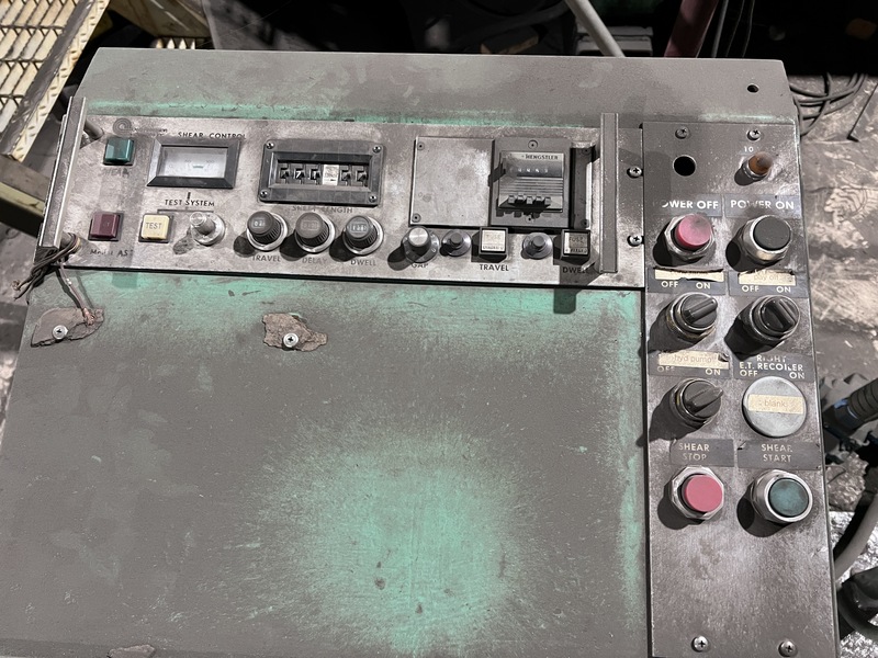 COIL WEIGHT CAPACITY 30000 pounds WIDTH CAPACITY 72 inches CAPACITY 12 GAUGE PASS LINE HEIGHT 60 inches SLITTING HEADS 2 SLITTING ARBORS 75" X 6" DIAMETER PINCH ROLL 78" X 7" DIAMETER DRIVE MOTOR DC SHEAR CAPACITY 12 GAUGE SHEAR BLADE 75" BOWTIE SHEAR CLUTCH AIR SHEAR MOTOR 20 HP, Equipment:, Model #:, Serial #: ...more