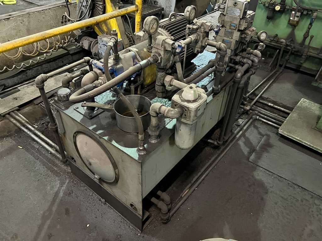 "L" Type Coil Car:, 52" Wide Deck, 40" Centerline of "V" to side mast allowing for an 80" OD Coil, 9" Dia. x 27" Long Lift Cylinder Body, Approx. 15" from floor to bottom of "V" Cradle, Self-Contained Hydraulic Power Unit, -Delta Cone Type Uncoiler:, Solid Non-Expanding Mandrels, Sliding Bases, Wichita Brakes on both ...more