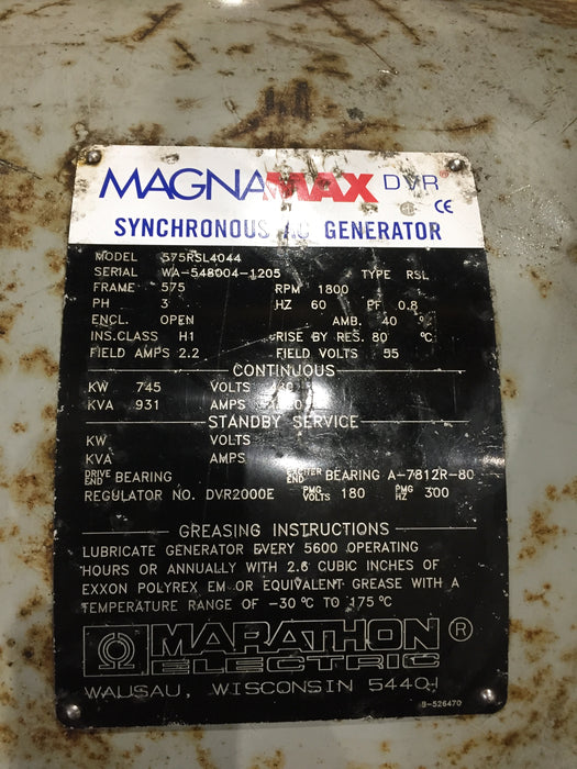 Used Generac 750kW Natural Gas generator. This Standby power unit is enclosed and has approximately 1 hours of use. It provides Three-Phase power at 277/480v and is ready to ship from our Brighton, Colorado facility., Model: S12A2-P, Capacity: 750kW, Amps: 1200, Volts: 277/480v, Phase: Three-Phase, Fuel Type: Natural ...more