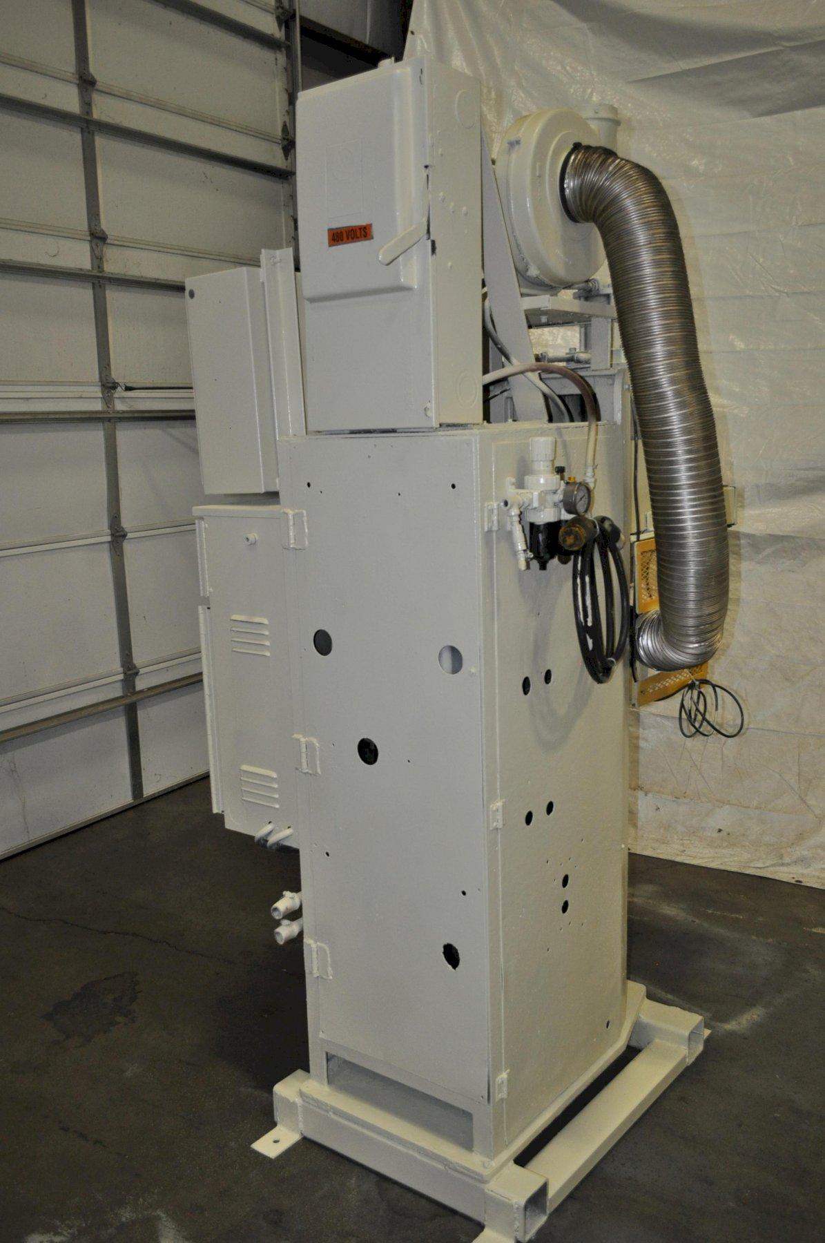 NEW 2017 75 KVA 8" x 8" PLATEN 18" THROAT MAX SEC VOLTS 10.0 MAX SEC VOLTS 5.7 MIN WATER FLOW 12 GPM @ 35 PSI ENTRON EN1000 CONTROL PALM BUTTONS 480 V 48" LR X 58" FB X 95" TALL APPROX 5,000 LBS.