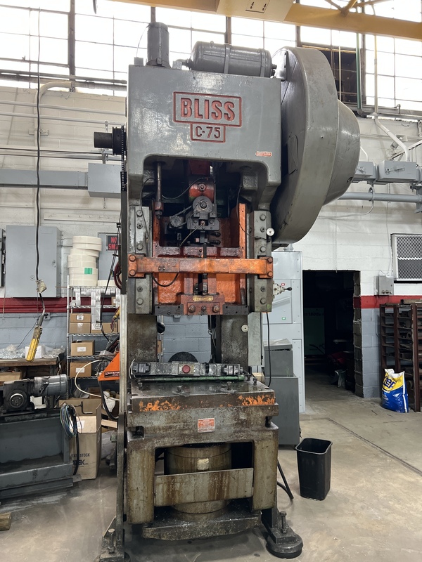 75 Ton, Bliss #C75, 4" stroke, 15" Shut Height, 3.5" adj., 35-70 SPM, 36" x24"bed, air clutch & brake, 1974