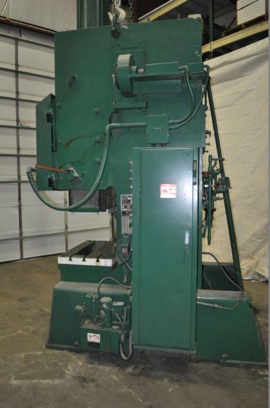 SERIAL.: H-52860, MODEL.: C-75, TONNAGE.: 75, STROKE.: 8", SHUT-HEIGHT.: 21", ADJUSTMENT.: 3.5", STROKES PER MINUTE.: 60 SPM, INCH, SINGLE, CONTINUOUS, BED SIZE.: 36" L-R X 24" F-B, RAM SIZE.: 24" L-R X 18" F-B, THROAT DEPTH.: 13", OPENING THROUGH BACK.: 19", AIR CLUTCH AND BRAKE.: YES, COUNTER BALANCE.: YES, AUTO ...more