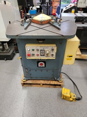 Manufacturer Boschert 5/32" Hydraulic Corner Notcher Model Light Year 2016 Condition Used Serial Number 4182 Stock Number 11120 Cutting capacity 5/32" (10ga) stainless Cutting length 8-7/8" x 8-7/8" Cut angle 90 degrees Main motor 4.5 HP Strokes per minute 50 Table size 25" F-B x 35" L-R ...more