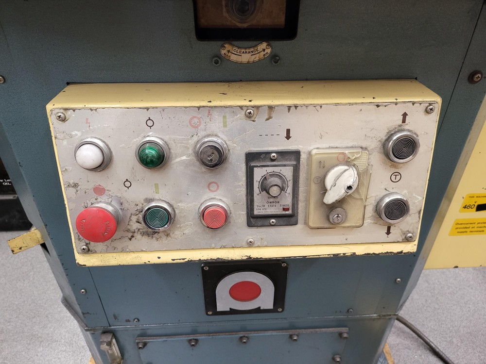 AMADA CS-220 Hydraulic Corner Notcher #8138 #2, Maximum Size of Notch: 8-5/8 x 8-5/8, Maximum Plate Thickness: 1/8, Rated Capacity: 10 Ton, Motor HP: 3, Electrical: 230V/3PH, Approx. Shipping Weight: 2,500 Lbs., Approx. Shipping Dimensions: 4 L x 4 W x 4.5 H, Inch/Single/Auto Stroke, Foot Pedal/Push Button Operation ...more