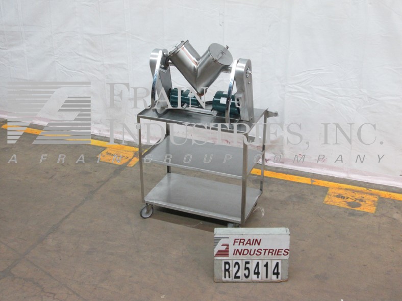 Crossley Economy 4 Quart V-Type / Twin Shell blender, Model 4 Quart, 304 stainless steel contacts. Shells measure 5-1/2" diameter x 10" long, 2-1/2"diameter discharge with a manually operated butterfly valve The blender is direct driven by 0.33 HP, 115/208/230V, single phase, 60 Hz, 1725 RPM explosion-proof motor thru ...more