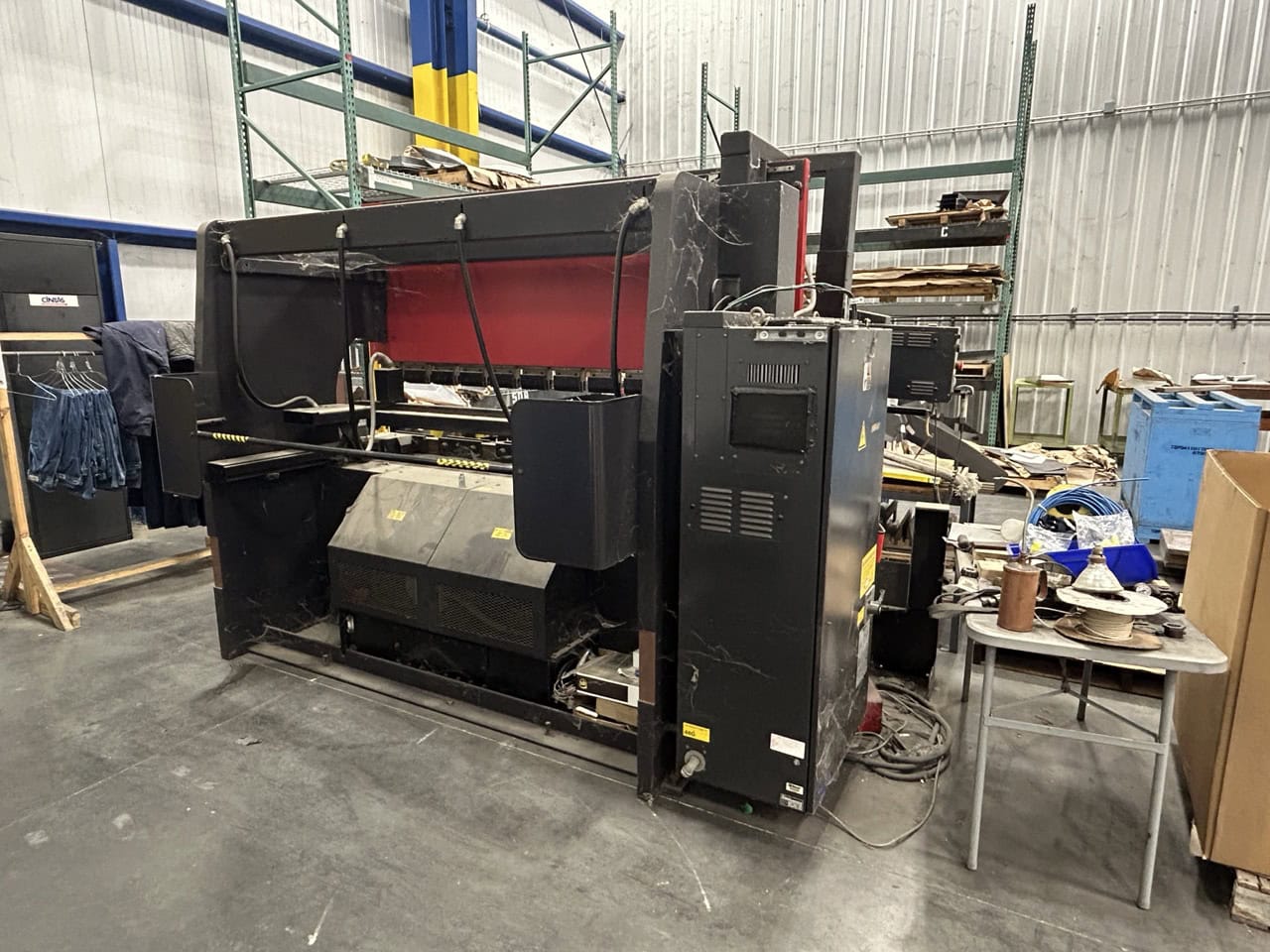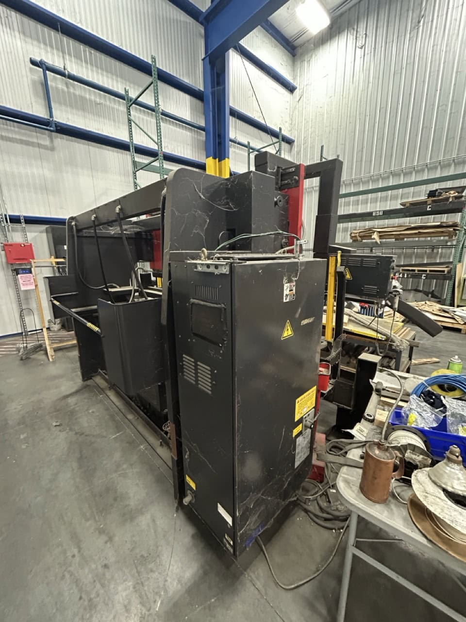 Amada RG80 Press Brake (subject to buyer verification):Capacity: 80 TonsTable Length: 94.6”Max Bending Length: 98.7”Distance Between Uprights: 80.8”Throat Depth: 15.76”Length of Stroke: 3.94”Open Height: 14.58”Power Required: 6 KVAOverall Length x Width x Hight: 98.7” x ...more