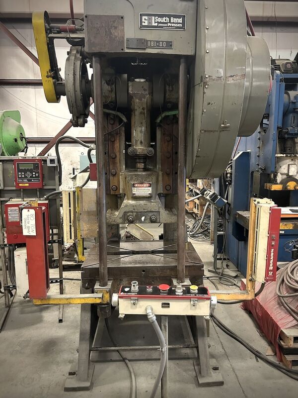 80 Ton, South bend South Bend #80FW-AC, 4" stroke, 15.5" Shut Height, 3.5"adj., 40-85 SPM, 3A/C & brake