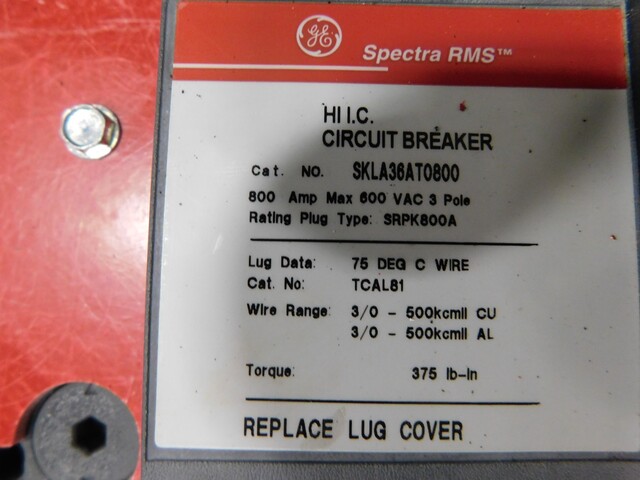 800 Amp. General Electric, Spectra Series, panelboard, 3 wire, 480 Volts, 3 phase