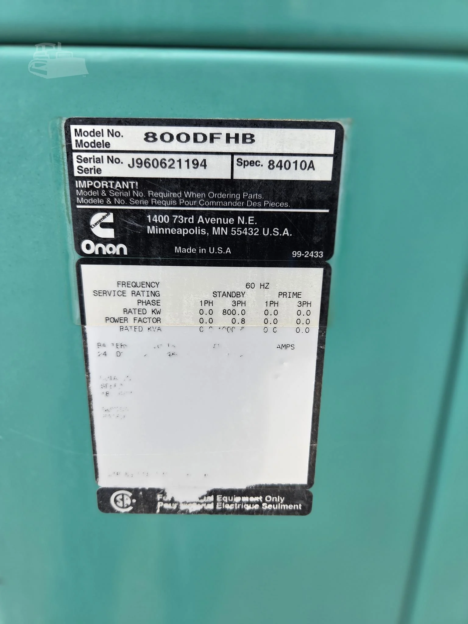 800 KW Cummins #800DFHB, Stationary Generator Set, 480 Volt Manufacturer: Cummins Model: 800DFHB kW: 800 Volts: 480 - 480 Price: $75,000 USD - Finance for as low as $1,521/mth Estimated monthly payment valid upon approved credit. Request Info 9 For Sale by Industrial Diesel Inc Surplus Record Dealer Since 1999 Contact Seller Decatur, TX Sales Dept. 817-23...> Show Seller's Phone Number 817-232-1071 Let the seller know you found their listing on Surplus Record! View More Industrial Diesel Inc 's ListingsDescriptionGeneralManufacturer: CUMMINSModel: 800 KWSerial Number: 37172209Condition: UsedDescription: Up for sale is a high-capacity Cummins 800 kW diesel generator, powered by the reliable QST30 industrial engine and equipped with Cummins PowerCommand digital controls. This unit is engineered for performance in critical standby applications and designed for both urban and remote installations. Ideal for data centers, hospitals, commercial facilities, or industrial sites requiring dependable backup or continuous power. Cummins 800kw. QST30 engine with power command and breakers.Category SpecificStandby Power Rating: 800 kWMax Voltage: 480 VEngineFuel Type: DieselEngine Manufacturer: cumminsEngine Model: qst30 Request More Information from SellerInquire Further with Industrial Diesel Inc! "*" indicates required fieldsName*Company*Email* PhoneZip / Postal Code*QuestionMake an OfferRequests Send me a shipping quote I am interested in financingSend Copy Email me a confirmation of this inquiryBuyer Protection Use our partner Escrow.com to buy or sell equipment safelyBuyer Protection Send me info about buyer protectionThis field is hidden when viewing the formDealer Email Buyers Who Viewed This Listing Also Viewed …JUST ADDED! 800 KW Caterpillar #C27, diesel generator set, 480 Volts, 668 hours, Tier 2, enclosure, tramont fuel tank, 2008Category: Diesel GeneratorsSeller: Foley Equipment - PowerLocation: Wichita, KS Mfr: CaterpillarModel: C27Year: 2008Notes. 2008 CAT C27 PACKAGE STATIONARY GENSET 800KW STANDBY, 480V, s 2008 CAT C27 PACKAGE 480V 800KW STANDBY CHARGER Control Panel - EMCP 4.2 COOLANT HEATER AND BATTERY MOUNTED BREAKER STATIONARY GENERATOR SET TIER 2 CAT C27 ENGINE TRAMONT FUEL TANK WEDLAKE ENCLOSURE Benefits Online Owner's Manual.JUST ADDED! 800 KW Caterpillar #C27, Portable Diesel Power Module, 30' Sound Attenuated Container, 1200-gallon double wall fuel tank, 1800 RPM, 480 Volt, 500 hours, 2010Category: Diesel GeneratorsSeller: Crawford Power SystemsLocation: Houston, TX Mfr: CaterpillarModel: XQ800Year: 2010Caterpillar C27 ACERT Diesel Power Module, 800kW Standby/725kW Prime, 480V, 60Hz, 1800RPM, Hours: Approx 500, DOM 2010, New 30FT Sound Attenuated Container, 1200GAL Double Wall Fuel Tank, New Tandem Axle Chassis, Breaker, ***Genset has been load tested & Serviced***, Package Information (Or) Generator ...moreJUST ADDED! 800 KW Cummins #C800D6E, Diesel Generator Set, S17 Centum Series Engine, 480 VoltsCategory: Diesel GeneratorsSeller: Atlantic Power & EquipmentLocation: ATLANTIC CITY, NJ Mfr: CumminsModel: C800D6EYear: 2026C800D6E Cummins 800kw 60Hz 480v Diesel Generator w/s17 Engine, S17 Centum Series, Built on a groundbreaking 17-liter engine platform, the S17 is a revolutionary power generation solution that embodies our company's century-long legacy of engineering excellence and innovation. This purpose-built solution was ...moreJUST ADDED! 800 KW Caterpillar #XQ800, Towable Diesel Generator, 30' sound attenuated container, 1200-gallon double wall fuel tank, 1800 RPM, 480 Volt, 131 hours, 2010Category: Diesel GeneratorsSeller: Penca Equipment LlcLocation: Miami, FL Mfr: CaterpillarModel: XQ800Year: 2010 800 KW Caterpillar #3412C, Enclosed on Fuel Tank, 1800 RPM, 480 Volts, 60 Hz, 2006, 785 HoursCategory: Diesel GeneratorsSeller: Ring Power SystemsLocation: Saint Augustine, FL Mfr: CaterpillarModel: 3412CYear: 2006Share × "*" indicates required fieldsYour Name*Your Email* Recipient's Email* Note to Recipient