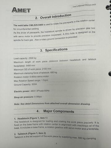 82" x 212" Amet #CWLS25-5400Z, Circumferential Welding Lathe, 31" Face diameter, 5500 lb. Part Capacity, 2015 Manufacturer: Amet Year: 2015 Length: 82.000 Diameter: 212.000 Stock # 18537 Request a Quote 10 For Sale by Yoder Brothers Machinery Surplus Record Dealer Since 1960 Contact Seller Toledo, OH Ryan Yoder 419-26...> Show Seller's Phone Number 419-269-2000 Let the seller know you found their listing on Surplus Record! View More Yoder Brothers Machinery 's ListingsDescription SERIAL ................... P14024MODEL .................... CWLS25-5400ZYEAR NEW ................. 2015CONDITION ................ LIKE NEW, IN CRATEHEADSTOCK / TAILSTOCK .... 31" DIAMETER FACEPART DIAMETER (MAX) ...... 82" (2,082MM)SUPPORT STEADY RESTS ..... FOR 47" TO 82" OD PARTSCENTER DISTANCE (MAX) .... 212" (5,400MM)PART CAPACITY ............ 5,500 LBS (2,000 KG)WELDING CARRIAGE TRAVEL .. SERVO DRIVENCARRIAGE RIDES ON ........ RAIL TRACKAMET XM WELDING SYSTEM:SERIAL NUMBER ............ 1231MODEL .................... XM WELDING SYSTEM CONTROLLER ............... AMET XM NUMBER OF CONTROL MODS ... 6FRONIUS WELD GEAR PACKAGE & INTEGRATION:POWER SOURCE MODEL ....... TRANSPLUS SYNERGIC 4000 CMT COOLING UNIT MODEL ....... FK-4000WIRE FEEDER MODEL ........ VR-1550 Request More Information from SellerGet Your Price from Yoder Brothers Machinery! "*" indicates required fieldsName*Company*Email* PhoneZip / Postal Code*QuestionMake an OfferRequests Send me a shipping quote I am interested in financingSend Copy Email me a confirmation of this inquiryBuyer Protection Use our partner Escrow.com to buy or sell equipment safelyBuyer Protection Send me info about buyer protectionThis field is hidden when viewing the formDealer Email Buyers Who Viewed This Listing Also Viewed … 58" x 72" Welding Lathe, Vari-speed Control, Pneumatic Tailstock, 32" face plate, adjustable tailstock base, Tag #15682Category: Welding LatheSeller: Yeoman Machinery CorpLocation: Elkhart, IN Miller, electric horizontal welding lathe, with wire feederCategory: Welding LatheSeller: AM IndustrialLocation: Warren, OH Mfr: MillerHorizontal welding lathe, Miller welding power supply auto axcess 300 and wire feeder. Serial No. ME021839U. 5" -240" x 15" Jetline #CWB-5-240, welding lathe, Jetline 9500, variable speed carriageCategory: Welding LatheSeller: C.W. Wood Machinery IncLocation: Cincinnati, OHJETLINE WELDING LATHE, MODEL: WB 5-240, SERIAL NUMBER: 960023, Weight Capacity: 1000 Lbs., Clamping Pressure: 500 Lbs., Length Capacity: 5" - 240", Maximum Diameter: 15", Jetline 9500 Controller, Jetline ALC-201 Arc Length Controller w/Powered Torch Lifter, Miller PV-300 GTAW Pulse Control, Weldcraft Tig Torch ...more Pro Pro Fusion #PFL-1216-37, Custom Welding LatheCategory: Welding LatheSeller: Aaron Equipment CoLocation: Schaumburg, IL Mfr: Pro Fusionused- pro fusion custom welding lathe, model pfl-1216-37. made to be 36" center to center instead of the stock 16" with tss-2 sharpshooter tungsten sharpener set.Share × "*" indicates required fieldsYour Name*Your Email* Recipient's Email* Note to Recipient