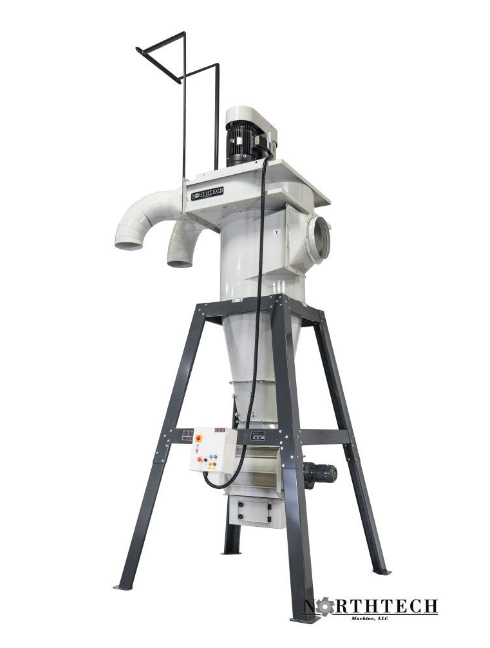 - This cyclone and filter bad are supported by a steel frame structure that allows for the ise of standard barrels and secondary waste system as an auger or transfer blower