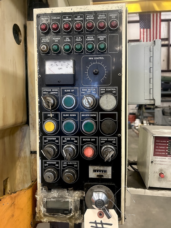 Preliminary :, 5.91" STROKE, 3.15" POWERED RAM ADJUSTMENT, 13" SHUT HEIGHT OVER BOLSTER, 35-80 SPM, 22.05" X 21.65" BED, AIR CLUTCH, AIR BRAKE, AIR COUNTERBALANCE, HYDRAULIC OVERLOAD, PALM BUTTONS, 1999, LIGHT CURTAINS, WELL MAINTAINED, CAME OUT OF RUNNING SERVICE!, AVAILABLE FOR INSPECTION UNDER POWER, AVAILABLE ...more