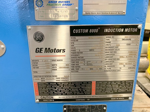 900 HP 1800 RPM General Electric induction motor, weather protected enclosure type 2, weather protected enclosure type 2, reconditioned Manufacturer: General Electric HP: 900.00 RPM: 1800 Enclosure: wpii Volts: 2300 - 4000 Request a Quote 10 For Sale by Machinery Scene Surplus Record Dealer Since 2013 Contact Seller Toledo, WA David Powell 360-86...> Show Seller's Phone Number 360-864-2800 Let the seller know you found their listing on Surplus Record! View More Machinery Scene 's ListingsDescription900 HP GE motor recondition, 4000 volt, 2300 volt, 1775 RPM, WP11 enclosure900 HP electric motor, GE Custom 8000 Induction Motor model # 5K82111594601, 1775 RPM, 4,000 volt, 2300 volt, enclosure WP11, frame 8211S, 3 phase, 60 Hertz, shaft length 7 ½"+-, shaft diameter 3 7/8"- key-way 1" wide, additional information and photos available, currently stored inside climate controlled room, approximate shipping dimensions of motor only: 39" wide X 62" long X 60" tall, approximate weight 6000 lbs., We can have the motor test run and video footage provided by an independent motor service shop including paperwork. Contact us for a delivered price to your location. Motor will be crated & palletized at NO charge. Request More Information from SellerGet Your Price from Machinery Scene! "*" indicates required fieldsName*Company*Email* PhoneZip / Postal Code*QuestionMake an OfferRequests Send me a shipping quote I am interested in financingSend Copy Email me a confirmation of this inquiryBuyer Protection Use our partner Escrow.com to buy or sell equipment safelyBuyer Protection Send me info about buyer protectionThis field is hidden when viewing the formDealer Email Buyers Who Viewed This Listing Also Viewed … 900 HP 1800 RPM Weg, Frame 5810/11, TEFC BB, 2300/4000 Volts, New SurplusCategory: Squirrel Cage AC Electric MotorSeller: Romanoff Industries IncLocation: Toledo, OH Mfr: WegFrame: 5810/11Stock #: 91965 Category: Squirrel Cage Motors HP: 900 RPM: 1786.00 Frame: 5810/11 Enclosure: TEFCBB Make: Weg Volts: 2300/4000 Service Factor: 1.15 Condition: New Surplus Location: Toledo, OH. 900 HP 1800 RPM Teco Westinghouse, Frame 6808B, TEFC, 2300/4000 VoltsCategory: Squirrel Cage AC Electric MotorSeller: Dykman Electrical, Inc.Location: Boise, ID Mfr: Teco WestinghouseFrame: 6808B 900 HP 1800 RPM ABB, Frame 5810, TEFC, BB, 2300/4000 Volts, newCategory: Squirrel Cage AC Electric MotorSeller: East Coast Electrical Eq.Inc.Location: Youngsville, NC Mfr: AbbFrame: 5810 900 HP 1800 RPM Siemens, Frame 588S, weather protected enclosure type 2, 1.0 service factor, New, 2300/4000 VoltsCategory: Squirrel Cage AC Electric MotorSeller: Houston Armature WorksLocation: Houston, TX Mfr: SiemensFrame: 588S 900 HP 1800 RPM U.S. Motors, Frame 5010/5011/5012S, weather protected enclosure type 2, SB, new, 2300/4000 VoltsCategory: Squirrel Cage AC Electric MotorSeller: ESR Motor Systems LLCLocation: Rock Hill, SC Mfr: U.S. MotorsFrame: 5010/5011/5012SShare × "*" indicates required fieldsYour Name*Your Email* Recipient's Email* Note to Recipient