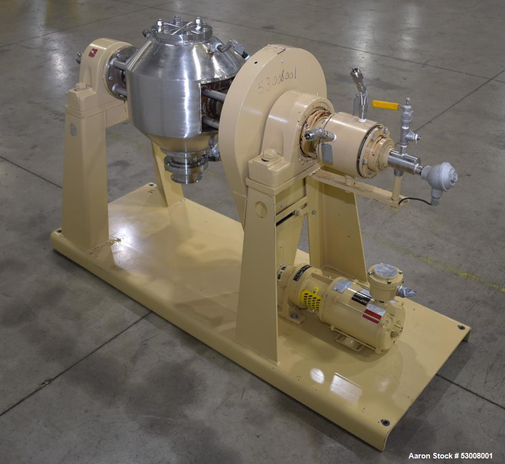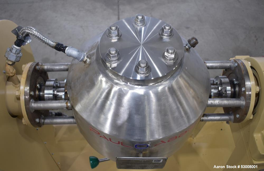 Paul O Abbe #RCVD-12, Rota-Cone Vacuum Dryer, Stainless Steel, 0.61 cu.ft. total, 0.4 cu.ft. operating, 12" diameter x 6" straight side Bowl, 1/4 HP, 230-460 V, 2011 Manufacturer: Paul O Abbe Model: RCVD-12 Year: 2011 Stock # 53008001 Request a Quote 10 For Sale by Aaron Equipment Co Surplus Record Dealer Since 2024 Contact Seller Schaumburg, IL Ken Matuszak 708-41...> Show Seller's Phone Number 708-412-6077 Let the seller know you found their listing on Surplus Record! View More Aaron Equipment Co 's ListingsDescription used- paul o abbe rota-cone vacuum dryer, model rcvd-12, 304 stainless steel. vessel volume: 0.61 cubic feet total, 0.4 cubic feet operating. approximately 12" diameter x 6" straight side bowl. internal rated 200 psig / fv at -20 to 375 degrees f. jacket rated 60 psi at -20 to 375 degrees f. driven by a 1/4hp, 3/60/230-460 volt gear motor, through a reducer 51:1 ratio. speed of rotation 0 - 5 rpm. (2) 4" openings. mounted on base. national board# 253, serial# 11121-439rcvd. 3/60/240 volt. Request More Information from SellerGet Your Price from Aaron Equipment Co! "*" indicates required fieldsName*Company*Email* PhoneZip / Postal Code*QuestionMake an OfferRequests Send me a shipping quote I am interested in financingSend Copy Email me a confirmation of this inquiryBuyer Protection Use our partner Escrow.com to buy or sell equipment safelyBuyer Protection Send me info about buyer protectionThis field is hidden when viewing the formDealer Email Buyers Who Viewed This Listing Also Viewed … Patterson, Stainless Steel Double Cone Vacuum Dryer, 2 cu.ft., 24" diameter x 24" Body, FV @ -20 °F to 200°F Shell, 50 psi Jacket, 3/4 HP, 1800 RPM, 220/440 VCategory: Vacuum DryersSeller: Perry Videx LLCLocation: Hainesport, NJ Mfr: PattersonUsed approximately 2 cubic foot Patterson stainless steel double cone vacuum dryer. Shell rated full vacuum @ -20F to 200F. Hot oil jacket rated 50 psi. Vacuum tube assembly. 3/4 HP drive, 3 phase, 60 cycle, 220/440 volt. 1800 rpm with gear reducer. Body approximately 24" diameter X 24" high. With stands. Approximate ...more Paul O Abbe #48RCDV, 20 cu.ft. Rota-Cone vacuum dryer, 48" diameter, Stainless Steel product contact surfaces, #3507-2Category: Vacuum DryersSeller: Federal Equipment CompanyLocation: Cleveland, OH Mfr: Paul O. AbbeModel: 48RCDVUsed 20 cu ft Paul Abbe Rotacone vacuum dryer, model 48RCDV, 304 stainless steel product contact surfaces, 32 cu ft total capacity, 20 cu ft working capacity, rated full vacuum at 350° internal, jacketed for 14 psi at 350, 48" diameter, 14" feed opening, 8" discharge with manual butterfly valve, on stands with ...more Patterson V-type dryer, 20 cu.ft., vacuum, Stainless Steel, jkt, liq feedCategory: Vacuum DryersSeller: Machinery & Equipment CoLocation: Brisbane, CA Mfr: PattersonPetterson-Kelley 20 cu. ft. Twin shell, v-type vacuum dryer with stainless steel product contact parts. Unit has carbon steel jacket rated 30 PSI @ 250 deg. F. Dryer is rated vacuum internal, complete with 5 HP Reeves vari-drive; motor with brake to chain sprocket drive, designed for 9.5 to. 95 RPM. Dryer is complete ...moreJUST ADDED! Stokes Vacuum #338-F9, Shelf Dryer, 200°F max. operating temperatureCategory: Vacuum DryersSeller: Ingalls Process EquipmentLocation: Painesville, OH Mfr: StokesModel: 338-F9one(1) used Stokes Vacuum Shelf Dryer. Model 338 F9 Lot 70356 Serial number 73413 Product code 900-338 24 10 shelves. 2.75 Top shelf is 1 Thus 9 useable shelves. Operating pressure internal - vacuum. Max. operating temp. 200F. Maguire #VBD-150, vacuum dryer, 375°F, 2014Category: Vacuum DryersSeller: Arlington MachineryLocation: Lake Zurich, IL Mfr: MaguireModel: VBD-150Year: 2014Used Maguire Vacuum Dryer, Model VBD-150, New in 2014 Maximum Throughput: 150 lbs./hr. Heating Hopper Capacity: 100 lbs (2.5 cu/ft) Vacuum Chamber Capacity: 40 lbs (1 cu/ft) Retention Hopper Capacity: 60 lbs (1.6 cu/ft) Max. Temperature: 375°F Process Heater: 11 KW Blower: 1.1 HP, 105 SCFM 480/3/60, 8.2 FLA ...moreShare × "*" indicates required fieldsYour Name*Your Email* Recipient's Email* Note to Recipient