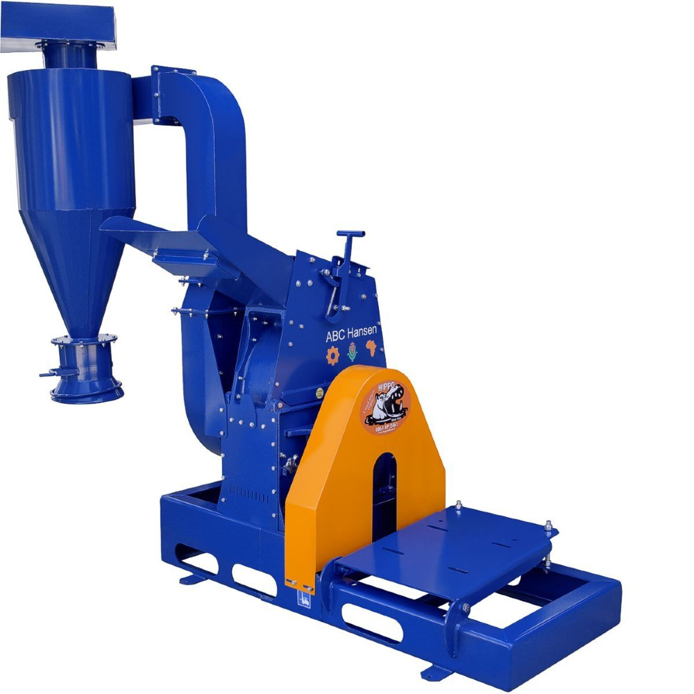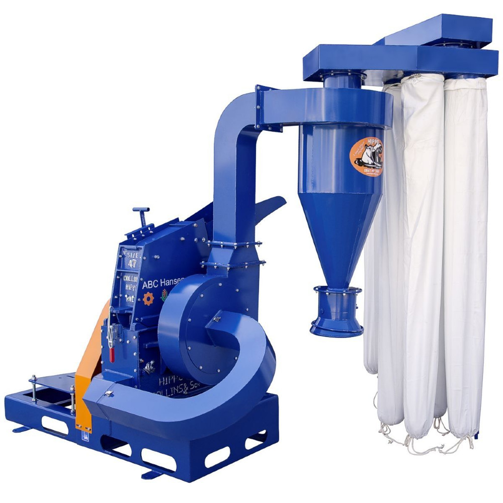 Abc Hansen Hippo #47 Cutler-Hammer mill, new, with or without 25 HP motor and starter Manufacturer: Abc Hansen Model: #47 Year: 2025 HP: 25 Price: $7,500 USD Request Info 8 Play VideoFor Sale by Pleasant Hill Grain Surplus Record Dealer Since 2023 Contact Seller Hampton, NE Tom Boley 402-72...> Show Seller's Phone Number 402-725-3835 Let the seller know you found their listing on Surplus Record! View More Pleasant Hill Grain 's ListingsDescriptionHippo hammer mill grinder machines rapidly pulverize a wide range of materials from grain, beans, herbs and fibrous roots to minerals, plastics, glass, bone and recyclables. Materials enter the milling chamber and are impacted by hammers rotating at high speed. Size reduction occurs until particles can exit through the holes of a perforated screen covering the discharge. Interchangeable screens offer hole sizes ranging from 0.6mm to 25mm.Milling chambers are constructed of high strength cast iron plates with bolted construction that eliminates common stress points to prevent cracking. After extended use, this method of construction allows fast, easy, on-site replacement of worn parts. Built for the demands of commercial and industrial grinding, Hippo mills are fast, efficient and durable, and their low cost won't break your material processing budget.The Hippo #47 hammer mill is IN STOCK and available with or without a 25HP electric motor and starter or VFD. The motor is a 208/230/460VAC, 60hz, 3-phase inverter duty rated motor. The starter is a "well panel" enclosed starter for either 230VAC or 460VAC. The VFD is available for 230VAC or 460VAC. The starter or VFD is not pre-wired to the motor. The VFD can be programmed to reduce the rotor shaft rpm. Slowing the speed of the rotor shaft can increase the likelihood of getting a coarser grind in hemp and other products, while still utilizing the material handling fan to move product from the mill to the material collecting cyclone.Hippo hammer mill grinders feature rigid hammers with reversible, replaceable tips of long wearing, impact and abrasion-resistant Bennox steel. The screen is located in the bottom half of the grinding chamber, covering an arc of about 180°. Milled material is transported from the discharge of the mill by an impeller fan mounted on the drive shaft, and delivered to the cyclone and dust separator. Suction created by the material handling fan aids transport of the product through screen holes. Stock interchangeable screens are available with hole sizes of 0.6, 0.8, 1.0, 1.2, 1.6, 2, 3, 5, 6, 10, 15, 20 and 25mm. The top half of the milling chamber swings open for full access to the hammers and screen, and screens can be changed out in just 30 seconds without tools.Hippo Hammer Mill SpecsHippo Hammer Mill ModelHPOutput Rate* thru 1/32" screen (lbs/hr)Output Rate* thru 1/16" screen (lbs/hr)Output Rate* thru 5/16" screen (lbs/hr)Rotor RPM**Finest Screen***Baby Hippo Mill5176440992528030 meshHippo #1 Mill1044011002480440030 meshHippo #1.5 Mill1577116534078438530 meshHippo #47 Mill25114619845291419030 meshHippo #57 Mill40132226456172423030 meshHippo #69 Mill60198438587716424530 mesh*Output rate is based on dry corn for reference, and will vary substantially for other materials based on factors including density and frangibility.**Rotor RPM is infinitely variable with optional VFD (variable frequency drive) for fine-tuning of speed and particle size.***Most product will exit even finer than the size of the holes in the screen. Hippo Hammer Mill DimensionsHippo Hammer Mill ModelWidth (inches)Depth(inches)Height (inches)Net Wt.(pounds)Baby Hippo Mill693778195Hippo #1 Mill944986407Hippo #1.5 Mill1295393772Hippo #47 Mill1295393827Hippo #57 Mill12957931,037Hippo #69 Mill16065931,235Dimensions and weights are based on the mill with air conveyor and no motor. Request More Information from SellerInquire Further with Pleasant Hill Grain! "*" indicates required fieldsName*Company*Email* PhoneZip / Postal Code*QuestionMake an OfferRequests Send me a shipping quote I am interested in financingSend Copy Email me a confirmation of this inquiryBuyer Protection Use our partner Escrow.com to buy or sell equipment safelyBuyer Protection Send me info about buyer protectionThis field is hidden when viewing the formDealer Email Buyers Who Viewed This Listing Also Viewed …JUST ADDED! Fitzpatrick #DKAS012, Stainless steel comminutor hammermill, 25 HP, 10" flange, 12.5" x 15.37" milling chamberCategory: Pulverizers and HammermillsSeller: JM Industrial LLCLocation: Millwood, WV Mfr: FitzpatrickModel: DKAS012Used 25HP Stainless Steel Fitzmill Comminutor Hammermill DKAS012, Serial No: 9084, Inlet: 10" flange, 98.5" above base elevation, Milling Chamber: 12.5"W X 15.37"L, with center screen support bar, Milling Blades: Fixed blunt flat-edge/knife edge, reversible, quantity of 32, Discharge: 16" X 19" ...more Raymond, Hammermill, high-speed, air swept, vertically arranged, 25 HPCategory: Pulverizers and HammermillsSeller: Aaron Equipment CoLocation: Schaumburg, IL Mfr: Raymondused- c.e. raymond 18" high-speed, air-swept, vertically arranged hammermill. designed for ultra-fine grinding. unit includes vertical shaft that carries all rotating internal components, rotor, (requires hammers and whizzer blades) fan blades, mill base, mill body with liners, screw feeder assembly, upper bearing ...more Cutler-Hammer Mill, Carbon Steel, 24" diameter x 10" width Chamber, 12" x 14" feed hopper, 10" x 15" discharge, 25 HP, 1725 RPM, 208/230/460 VCategory: Pulverizers and HammermillsSeller: Machinery & Equipment CoLocation: Brisbane, CA Mfr: Cutler-HammerHammer mill, carbon steel product contact parts, driven by 25 HP 208/230/460 volt, 3-phase, 60 Hertz,1725 RPM main motor drive. Unit s 12" x 14" feed hopper. Mill chamber measures 24" diameter x 10" wide. Unit s four sets of 2 fixed slugger hammers with 1" diameter carbon steel screen. Unit has 10" x 15" discharge. ...more Fitzpatrick #FASO12, Stainless Steel hammermil