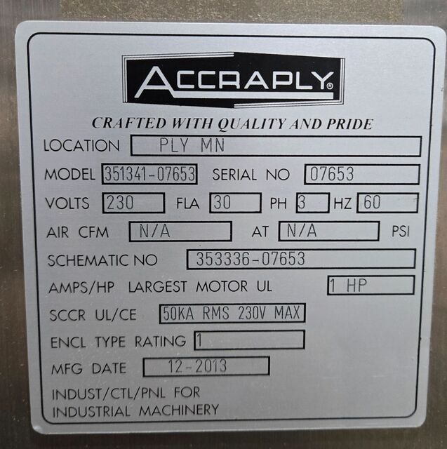 2013 ACCRAPLY 351341-07653 industrial equipment for sale. Used condition but with missing components and damaged area. Ideal for various business applications. Robust design by a trusted manufacturer. Perfect for enhancing operational efficiency.