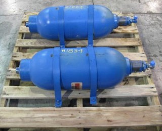 NACOL (WILKES AND MCCLEAN) MODEL N210-20A BLADDER TYPE. 3000 PSI. MAX FLOW IN AND OUT IS 159 GPM. 2" NPT PORT. APPROX OVERALL DIMENSIONS: 32" X 11". 200 POUNDS. ITEM #1834.