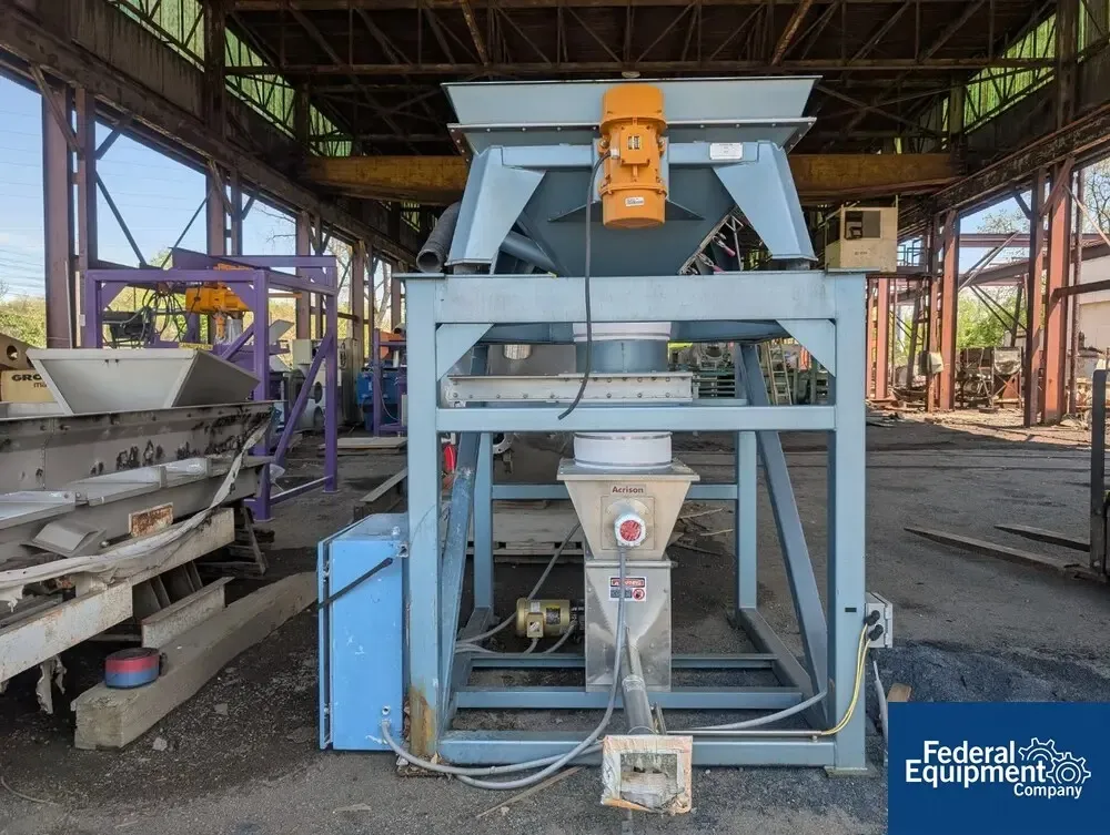 Used Acrison Bulk Bag Unload Stand, Model 810 Bbu, With Stainless Steel Bag Hopper With Vibrating Bed, Discharging Into Acrison Volumetric Feeder, System Serial# 14295-02. Less Hoist And Bag Hanger Frame.